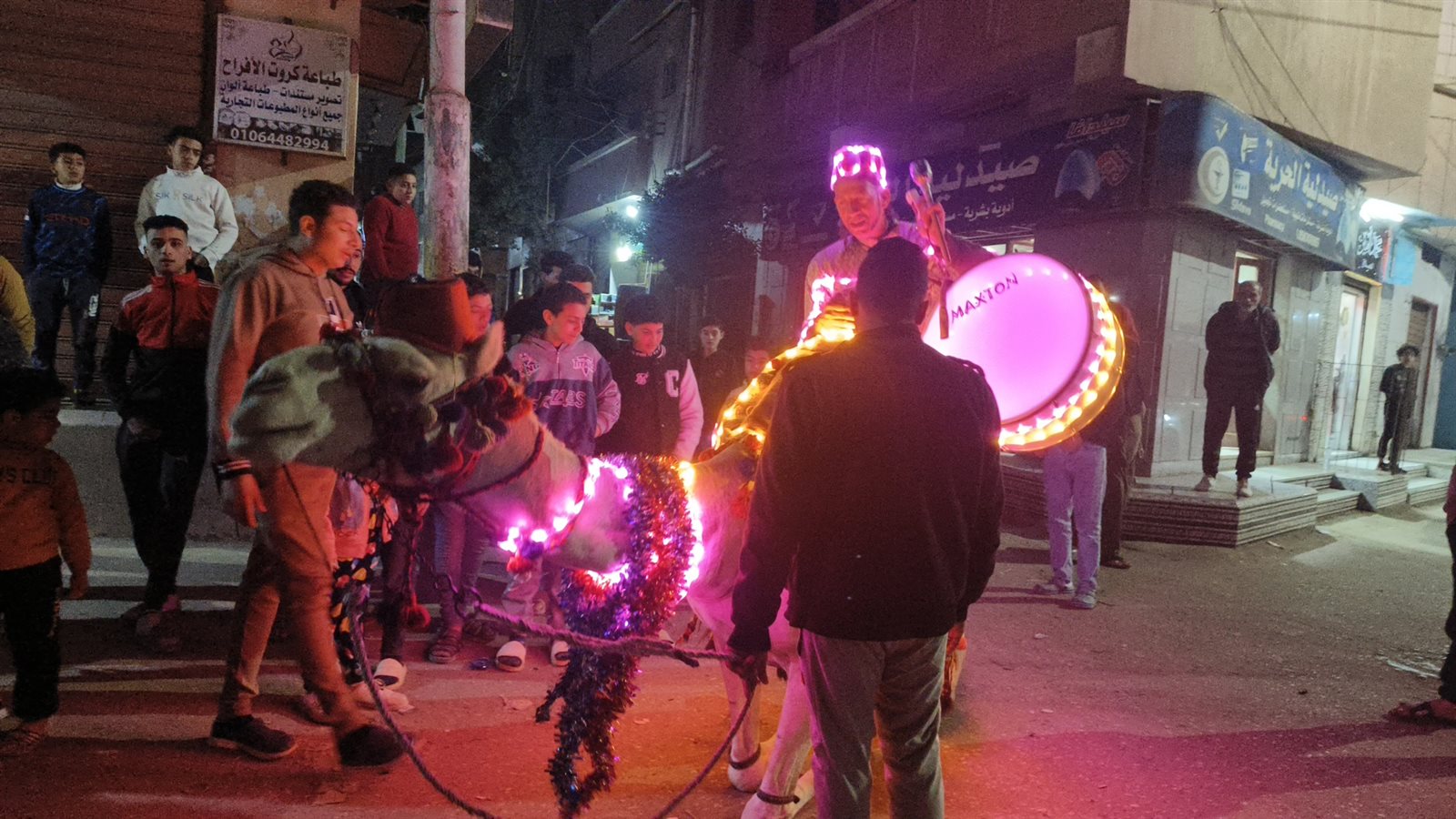 وتابع "الدهشان" مع تطور المجتمع وللعام الرابع على التوالي بدأت العمل بالأنوار وركوب حمار جوبت الشوارع والحوارى وكذلك بالجمل والأنوار.