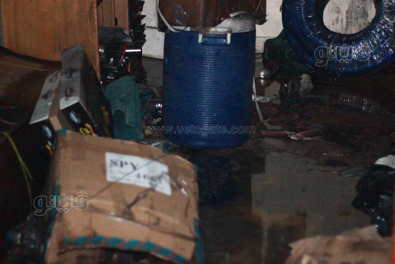 وتظهر الصور نشوب الحريق في مخزن رقم 4 بشارع زكى بمنطقة التوفيقية من ميدان عرابي، وامتداد أثر النيران لـ 3 شقق بالعقار.