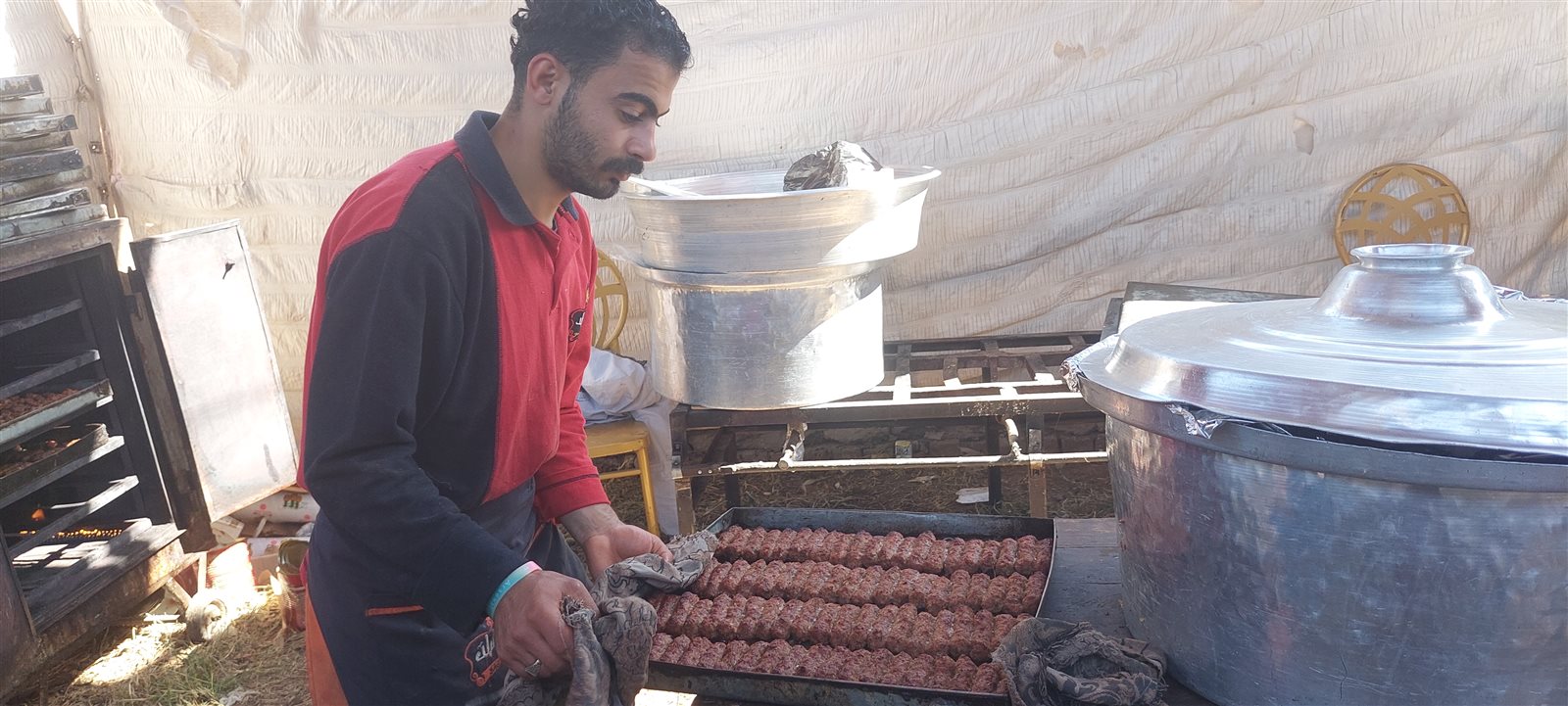 وتابع، أحمد زكي، احد الشباب القائمين علي المائدة، والمسؤول عن شراء كافة احتياجات افطار الصائمين، أننا نقدم وجبات مغلفة للصائمين خارج الخيمة ووجبات أخرى للصائمين الذين يأتون لخيمة الإفطار يوميا، وفي الحقيقه نحن مجموعة كبيرة من الشباب نعمل علي تجهيز المائدة من قبل رمضان حيث أننا نشتري كميات كبيرة من اللحوم ونقوم بتخزينها تمهيدا لطبخها في شهر رمضان، أما الخضروات فيتم شرائها يوميا من وكالة الخضار بكفرالشيخ لتكون طازجة، ونستمر في تقديم الطعام للصائمين حتي نهاية الشهر الكريم، ونحاول جاهدين أن نقدم طعام جيد متنو نظيف لجميع الصائمين الذين يقصدوننا يوميا، نسأ الله القبول وان يكون العمل خالص لوجهه