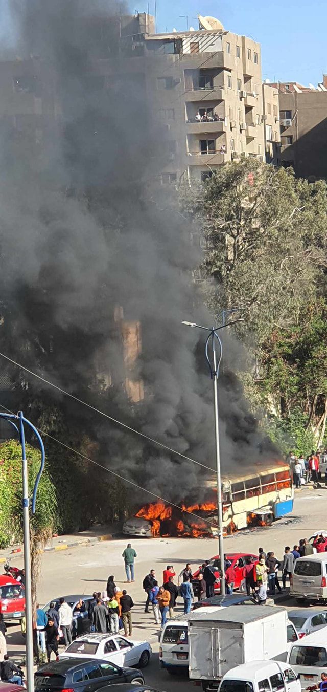النيابة تعاين موقع نشوب حريق في أتوبيس نقل عام بفيصل (صور)