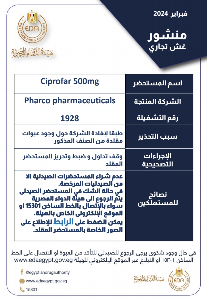 أصدرت هيئة الدواء المصرية منشورات تحذيرية من وجود أدوية مغشوشة في السوق يجب عدم تناولها.