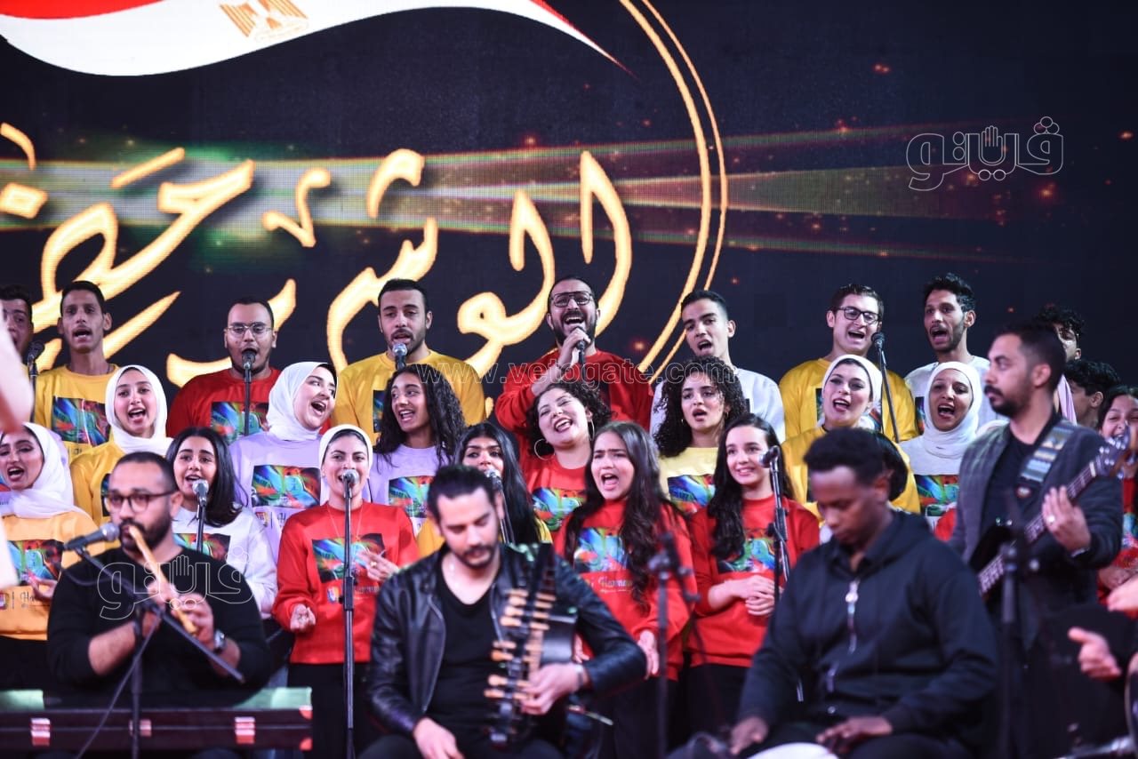 وخلال الحفل، قدمت فرقة كورال "هارموني عربى" بجامعة عين شمس، بقيادة المايسترو محمود وحيد، باقة مميزة من أشهر الأغانى الوطنية، والتي تفاعل معها الحضور.