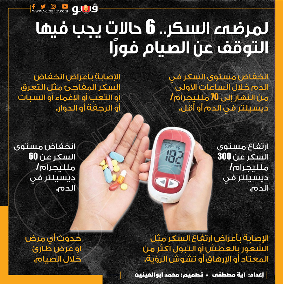 لمرضى السكر، 6 حالات يجب فيها التوقف عن الصيام فورًا (إنفوجراف) الجمعة 22/مارس/2024 - 05:05 م 3/22/2024 5:05:33 PM مرضى السكر، فيتو آية مصطفى شارك طباعة 18 حجم الخط شارك طباعة أعراض ارتفاع السكر ارتفاع السكر اعراض انخفاض السكر انخفاض السكر مستوى السكر في الدم مستوي السكر مرضي السكر انفوجراف