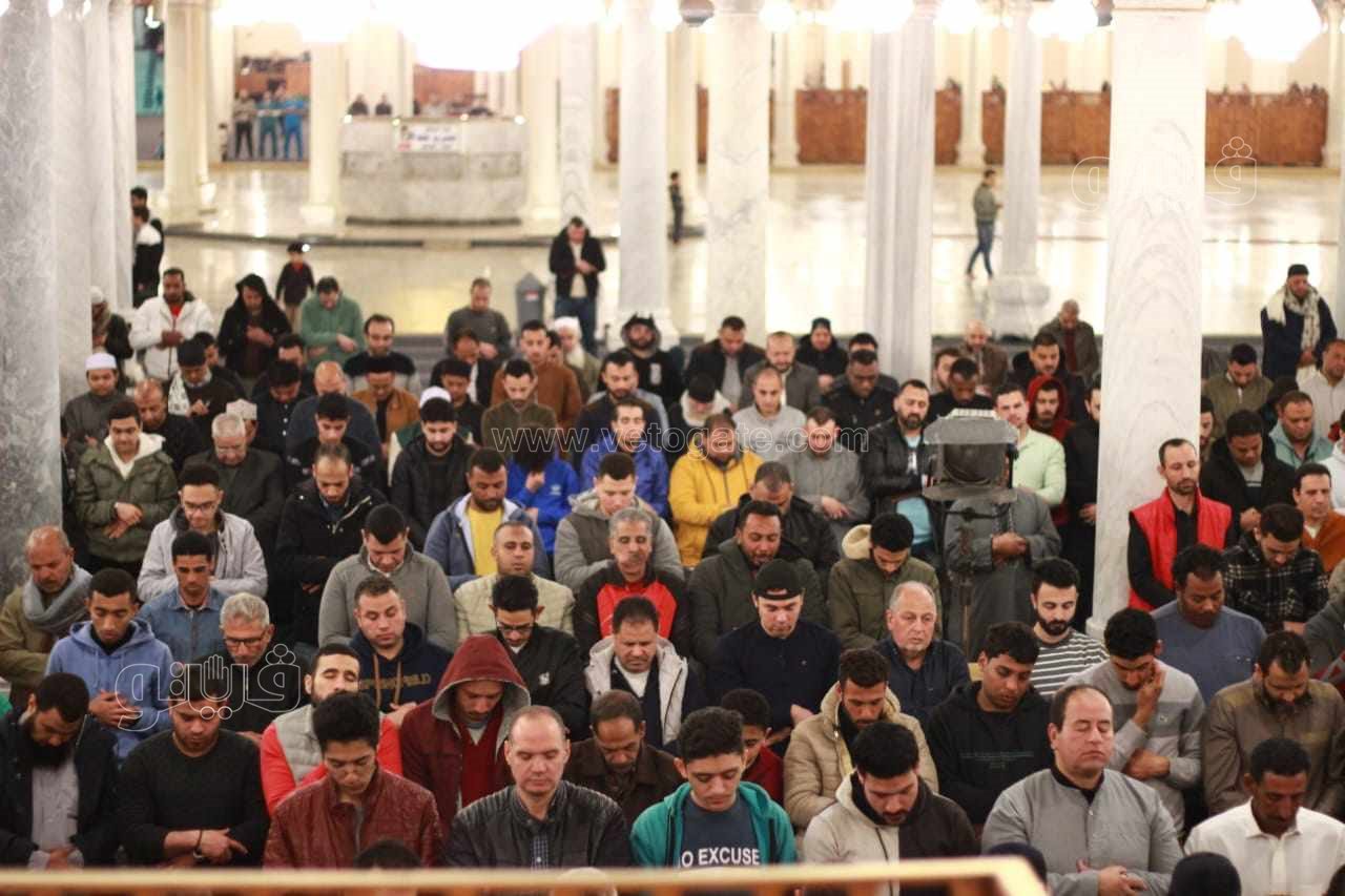 أدى المئات من المصلين صلاة العشاء والتراويح في مسجد عمرو بن العاص، في اليوم الحادي عشر من شهر رمضان، وسط أجواء روحانية وإيمانية عالية.