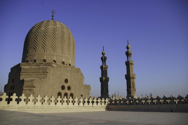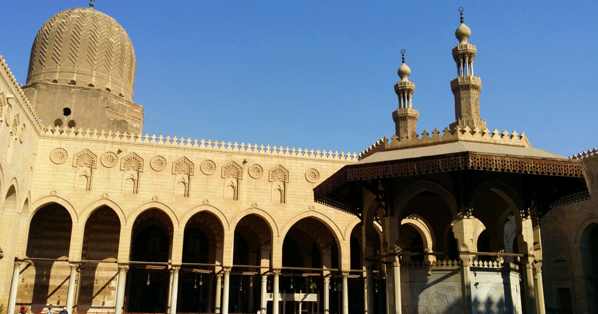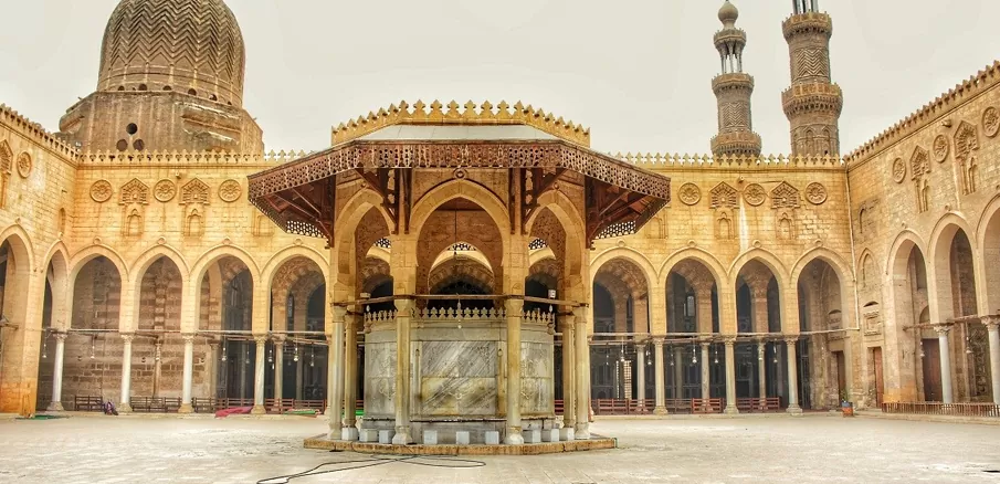 يمتاز الجامع بظاهرة فريدة من نوعها حيث شيدت مئذنتا الجامع فوق مبنى أثري آخر وهو باب زويلة المجاور للجامع والذي يرجع للعصر الفاطمي، وأصبح كلاهما عنصرا معماريا بشكل أكثر من رائع وتحمل المئذنة الغربية اسم منشئ الجامع والأخرى تحمل اسم محمد بن القزاز مهندس المئذنة، بحسب الموقع الرسمي لوزارة السياحة والآثار.
