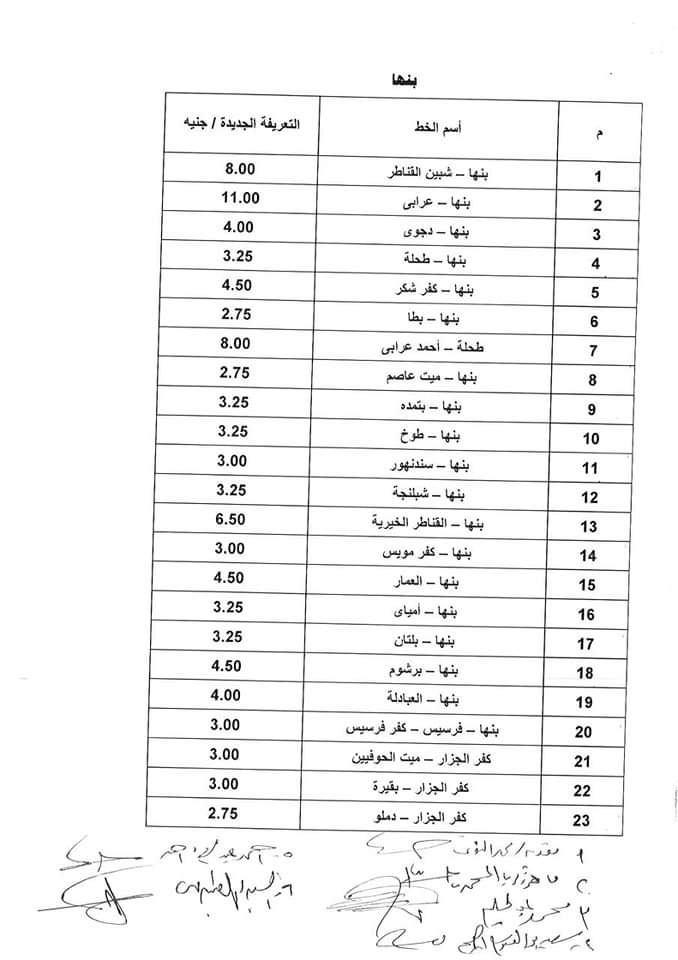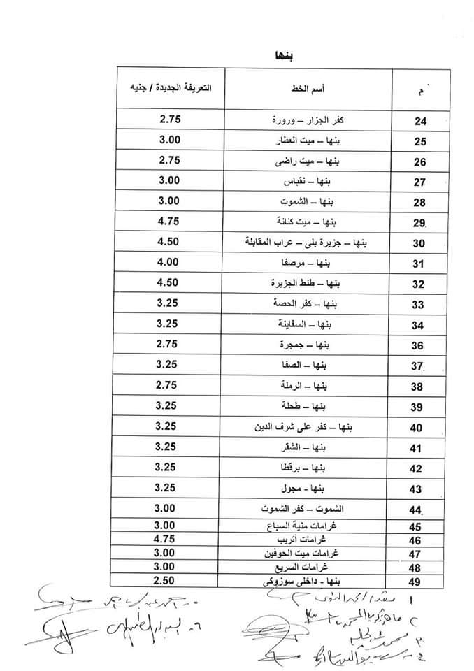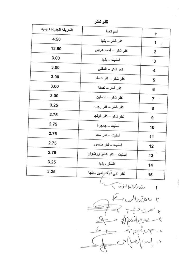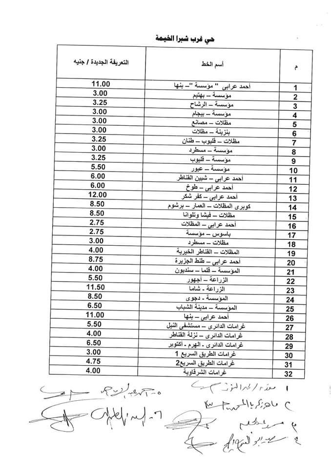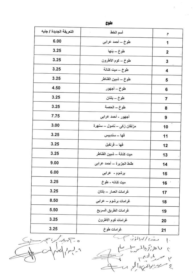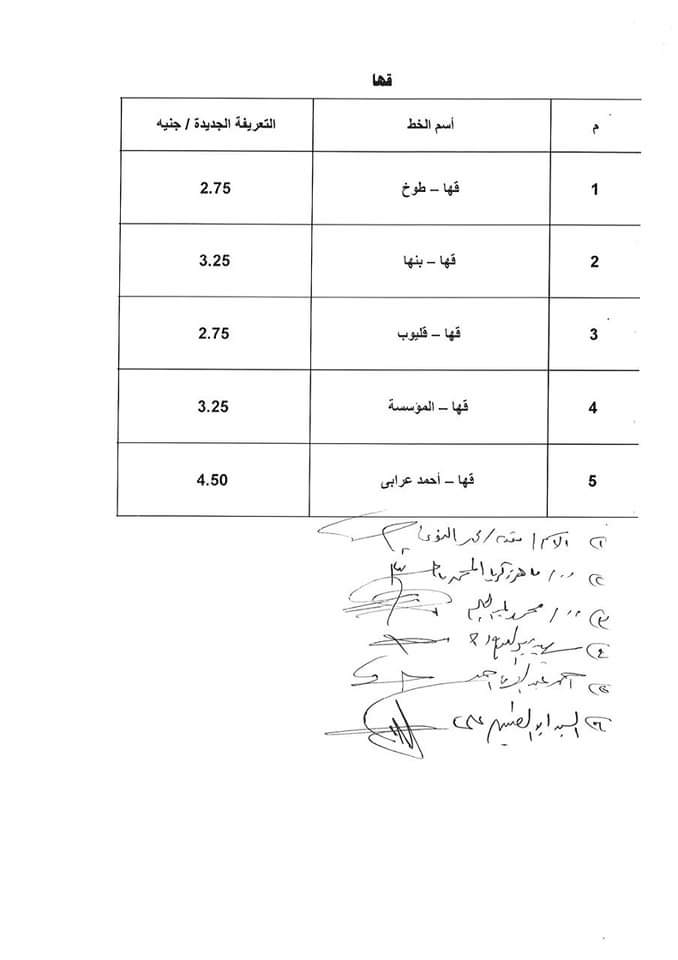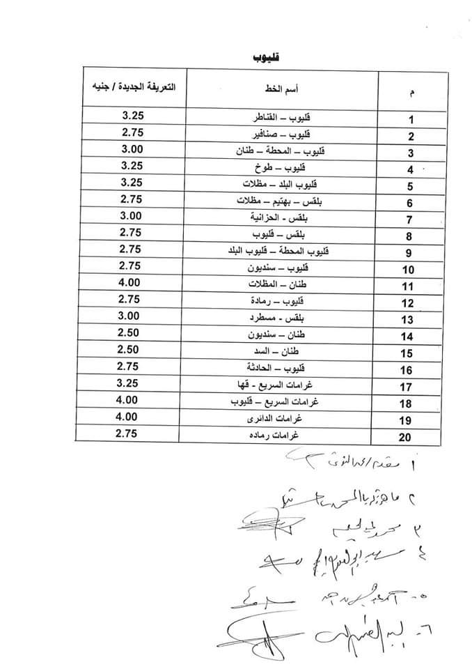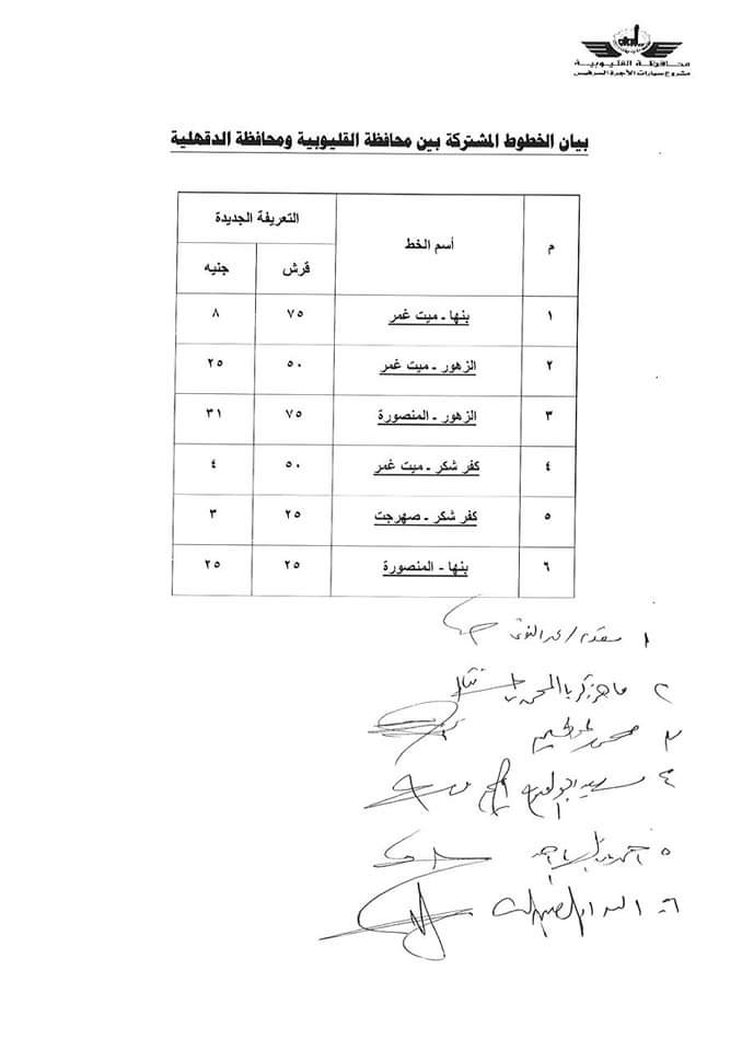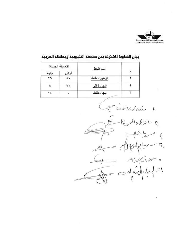 وأصدر محافظ القليوبية قرار رقم 287 لسنة 2024 الخاص بتشكيل لجنة تعديل التعريفة الجديدة والمقررة لركوب سيارات الأجرة والسرفيس بدائرة المحافظة للخطوط الطويلة والداخلية، وذلك علي إثر زيادة اسعار الوقود التى اقرتها لجنة التسعير التلقائي للمنتجات البترولية اليوم الجمعة