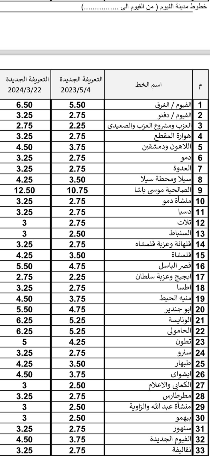 التعريفة الجديدة لسيارات السرفيس والتاكسي في الفيوم بعد زيادة أسعار السولار والبنزين