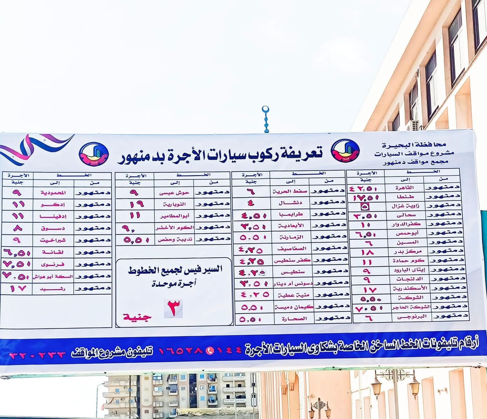 من جانبه، تفقد محمد كچك رئيس مركز ومدينة دمنهور، مجمع مواقف سيارات الأجرة للتأكد من التزام السائقين بالتعريفة الجديدة ومتابعة وضع بنرات ولوحات إرشادية بالتعريفة الجديدة بالمواقف ووضع ستيكرات بالتعريفة وتطبيق العقوبات الرادعة على المخالفين.