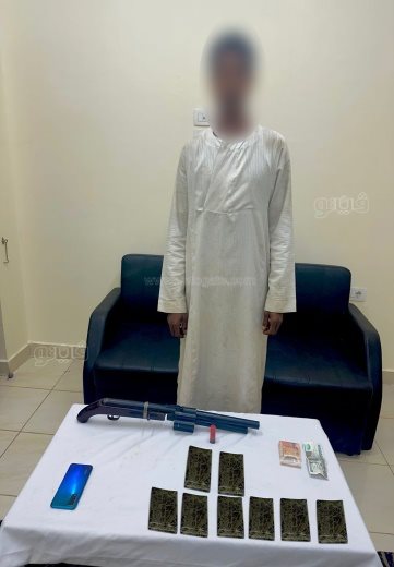 وتم ضبط عاطل "له معلومات جنائية"- مقيم بدائرة مركز شرطة القرنة، وبحوزته 2 كيلو جرام لمخدر الحشيش- بندقية خرطوش وطلقة.