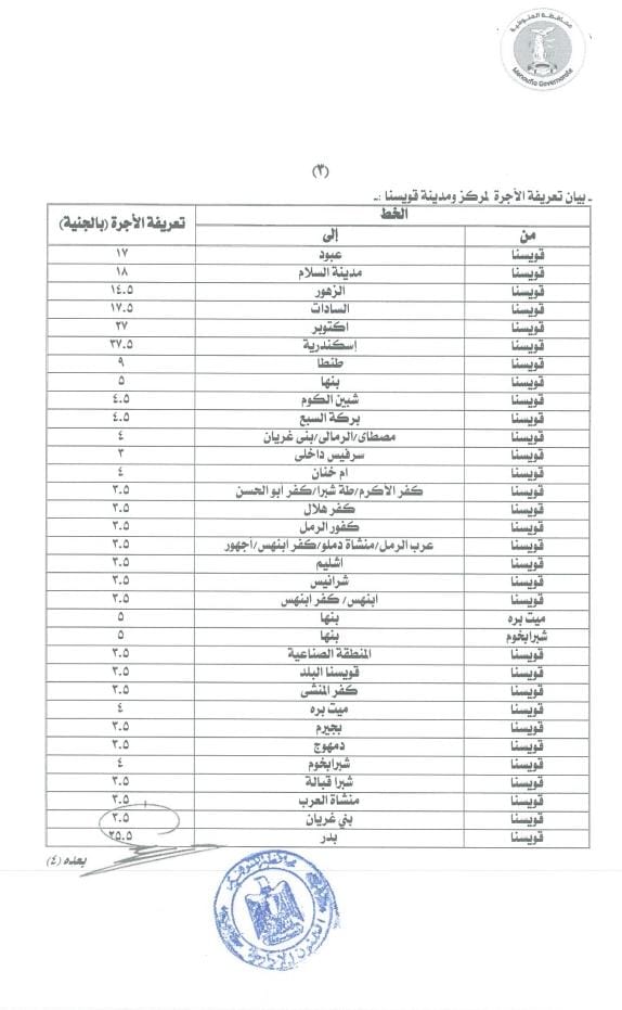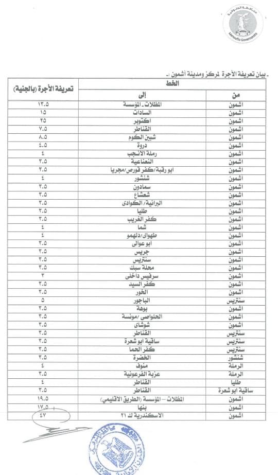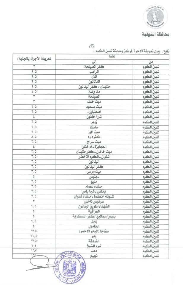 تعريفة الركوب بعد تحريك أسعار الوقود بالمنوفية