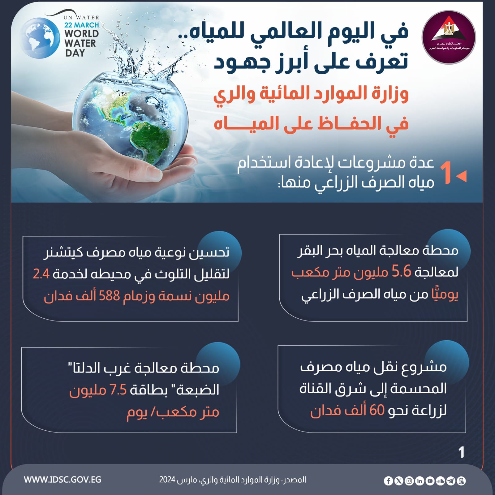 في اليوم العالمي للمياه، جهود وزارة الموارد المائية في الحفاظ عليها (إنفوجراف)