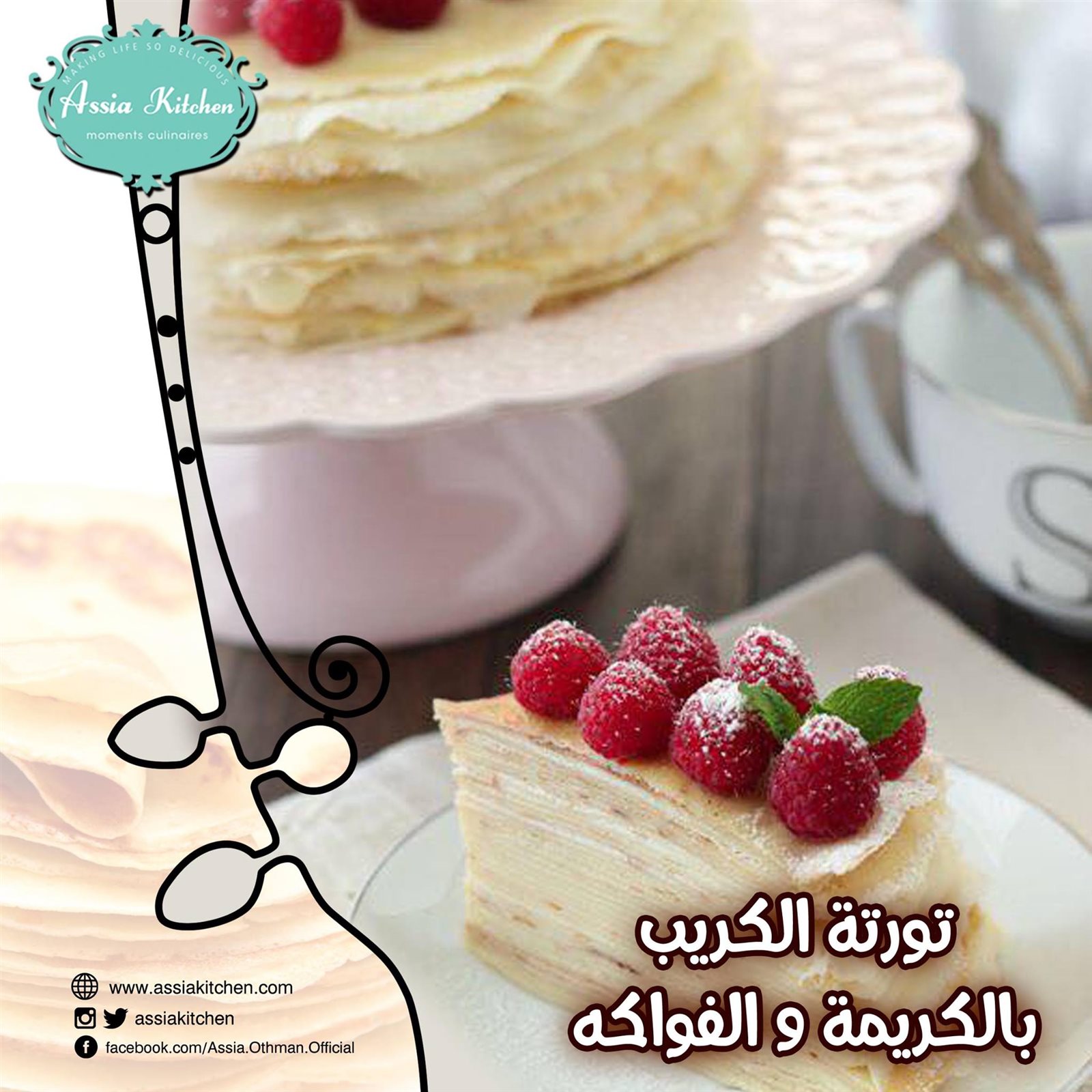 وتقدم الشيف آسيا، طريقة عمل تورتة الكريب المميزة، وهي من الطرق غير التقليدية، واللذيذة، إلى جانب أن شكلها مبهر.