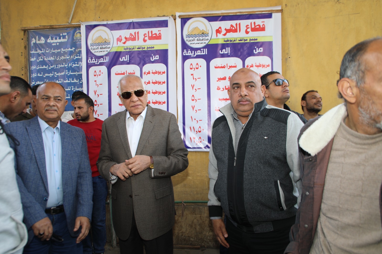 ورافق المحافظ محمد نور السكرتير العام المساعد واللواء أمجد أنور مدير الإدارة العامة لمرور الجيزة وأيمن عتريس رئيس جهاز التفتيش والمتابعة الميدانية ومحمود حسين رئيس جهاز السرفيس والنقل الجماعى وطه عبدالصادق رئيس حى الهرم وأشرف تامر رئيس حى الطالبية وذكى سلام رئيس حى جنوب الجيزة وشفيق جلال رئيس الهيئة العامة للنظافة والتجميل.