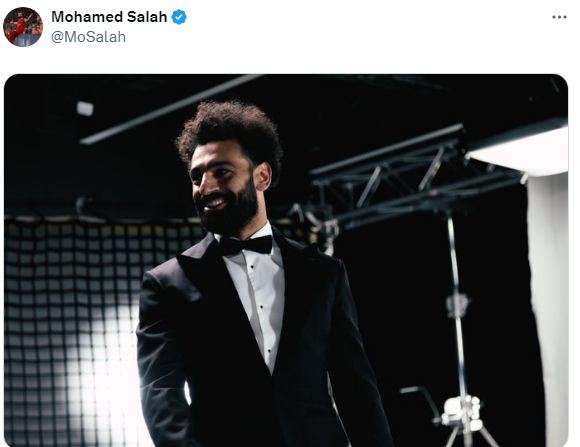قام محمد صلاح، لاعب المنتخب المصري، المحترف في صفوف ليفربول الإنجليزي بـ نشر صورة عبر حسابه على موقع «إكس» مرتديا بدلة دون الكشف عن أى تفاصيل.