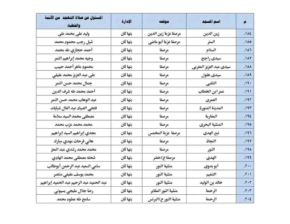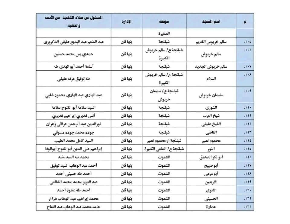 بالأسماء، تخصيص 371 مسجدا للاعتكاف بالقليوبية