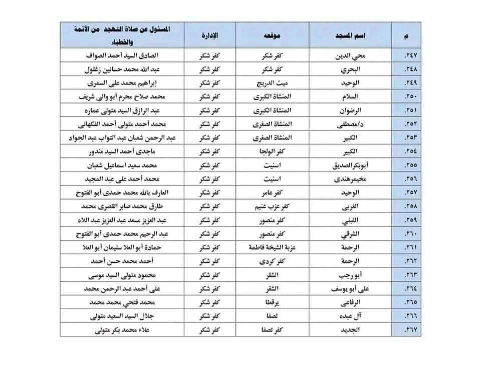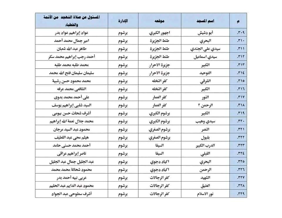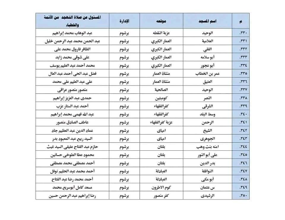 • على جميع المفتشين ومديري الإدارات والمديريات متابعة كل شئون الاعتكاف بدءًا من تسجيل المعتكفين إلى إتمام عملية الاعتكاف كل فيما يخصه.