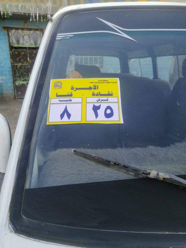 وفي ذات السياق وجه اللواء أشرف الداودي محافظ قنا، بتكثيف الحملات المرورية والرقابية على مواقف نقل الركاب، وعلى الطرق السريعة، والداخلية بالتنسيق مع مديرية الأمن، وإدارة المرور للتأكد من التزام السائقين، وأصحاب التاكسى بالتعريفة الجديدة، ووضع بنرات، ولوحات إرشادية بالتعريفة الجديدة بالمواقف، ووضع ستيكرات بالتعريفة الخاصة بكل خط على السيارات والتاكسي،وتطبيق العقوبات الرادعة على المخالفين.