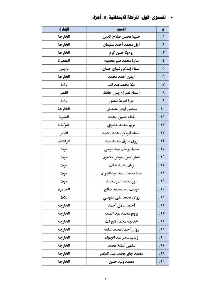 • المستوى الأول: المرحلة الابتدائية 5 أجزاء: وتقدم لهذا المستوى (314) متسابقًا، وتمت الاختبارات الأولية والتصفيات النهائية، والتي أسفرت عن فوز (41) متسابقًا في هذا المستوى.