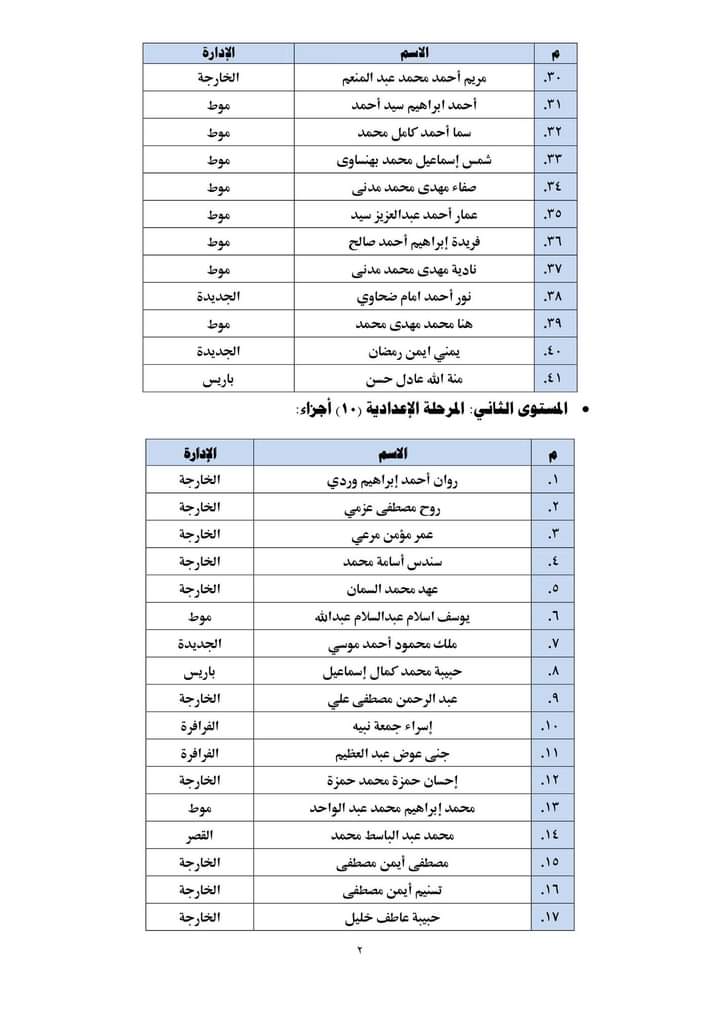 • المستوى الثاني: المرحلة الإعدادية 10 أجزاء: وتقدم لهذا المستوى (218) متسابقًا، وتمت الاختبارات الأولية والتصفيات النهائية، والتي أسفرت عن فوز (114) متسابقًا في هذا المستوى.