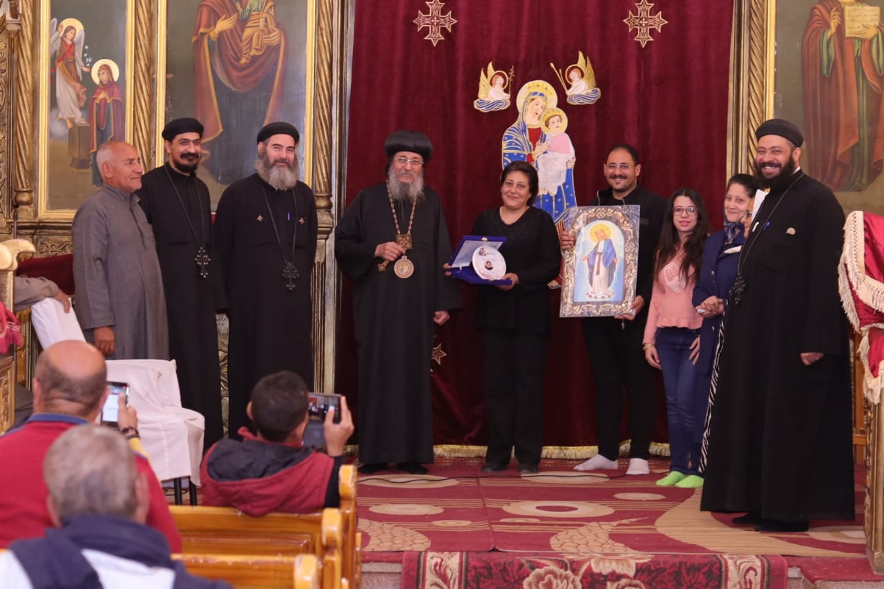 وفي نهاية الحفل، قدم الأنبا يواقيم لها درع تكريم بإسم الإيبارشية والهدايا التذكارية إلى الأم المثالية، وفي ختام الحفل تم التقاط الصور التذكارية معهم.