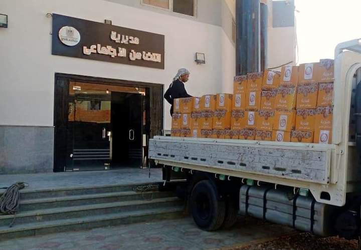 توزيع 500 كرتونة مواد غذائية على الأسر المستحقة بالقرى
