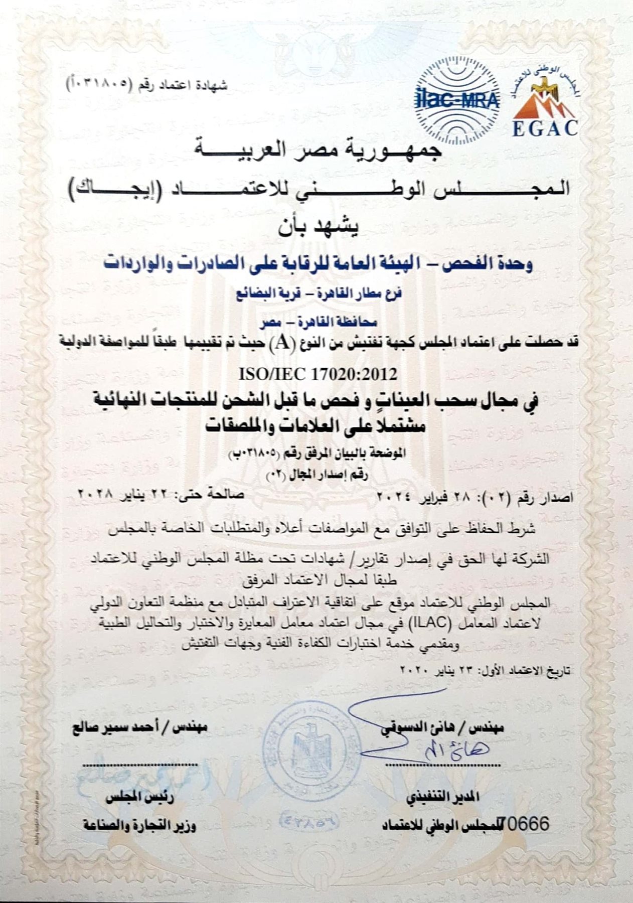 أكدت الهيئة العامة للرقابة على الصادرات والواردات، أنه في إطار ما تبذله الهيئة في دعم المصدرين وزيادة الصادرات المصرية، فقد تم اعتماد الهيئة العامة للرقابة على الصادرات والواردات كجهة اعتماد وتقييم وتفتيش من النوع (A) طبقا للمواصفة الدولية ISO/IEC 17020:2012