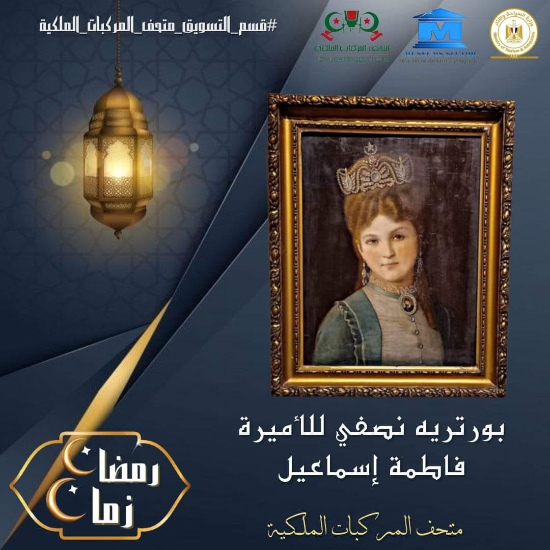 يعرض متحف المركبات الملكية بورتريه نصفي لـ الأميرة فاطمة إسماعيل بإطار مذهب وتظهر في اللوحة مرتدية بروش يحمل صورة والدها الخديوي إسماعيل، وتُعرض بقاعة العرض المتغير.