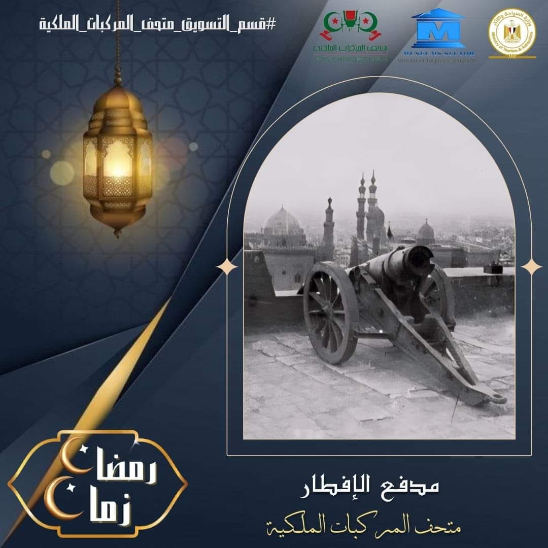 ويعرض قصر الأميرة فاطمة إسماعيل المعروف باسم المتحف الزراعي بالدقي حاليًّا مدفع إفطار تاريخي يسمى "مدفع الحاجة فاطمة" ومن حينها ومدفع رمضان ينطلق من قلعة صلاح الدين (بالقاهرة)، ثم أمر الخديوي إسماعيل بمدفع آخر ينطلق من جبل المقطم حتى يصل صوته لأكبر مساحة من القاهرة وفي الإسكندرية تم وضع مدفع بقلعة قايتباى، ومنذ ذلك الوقت يعد صوت المدفع من أهم الطقوس الرمضانية حتى يومنا هذا.