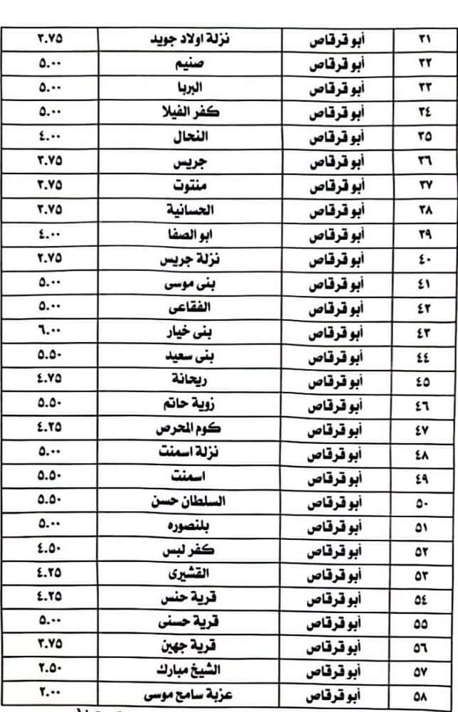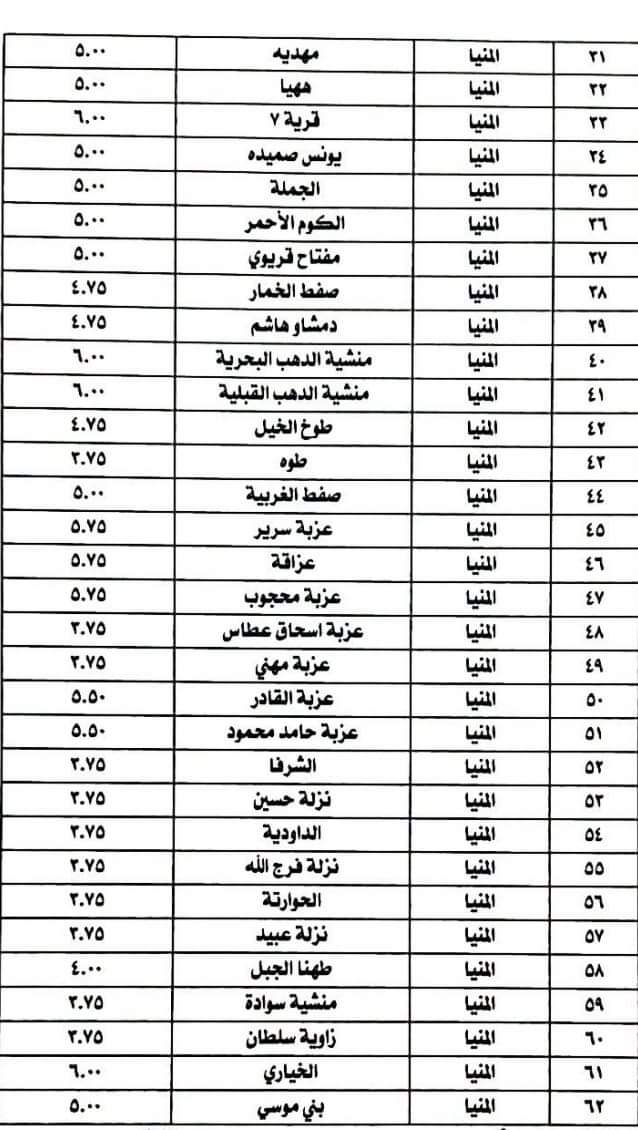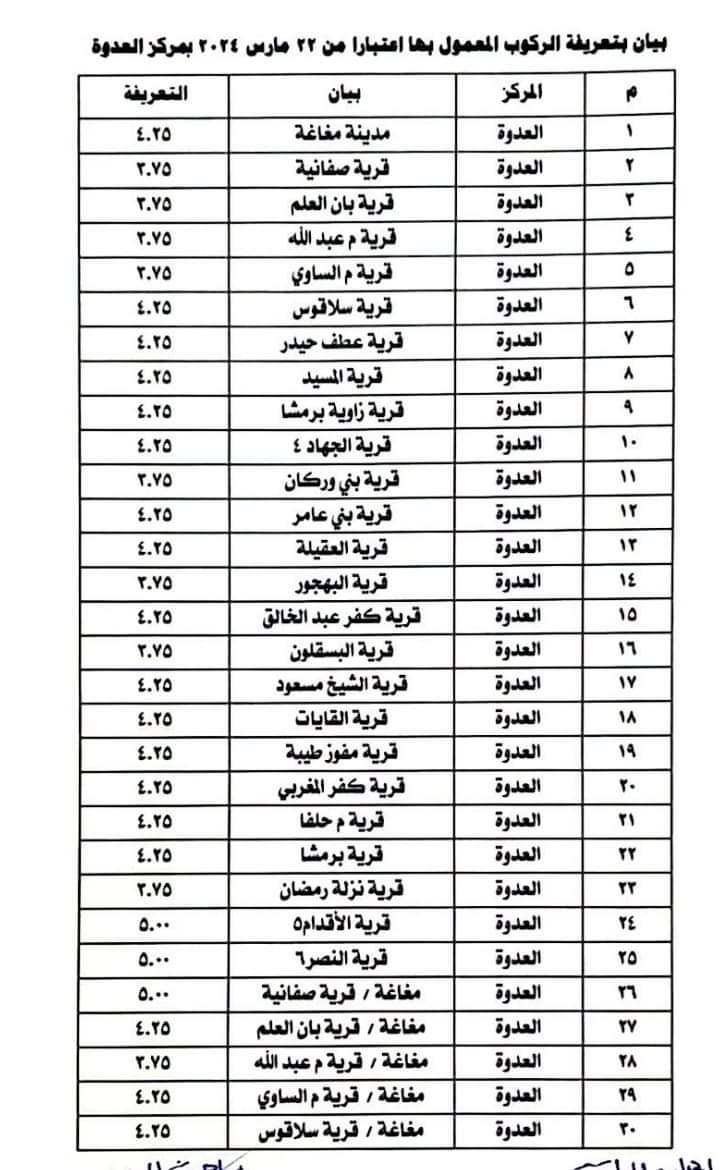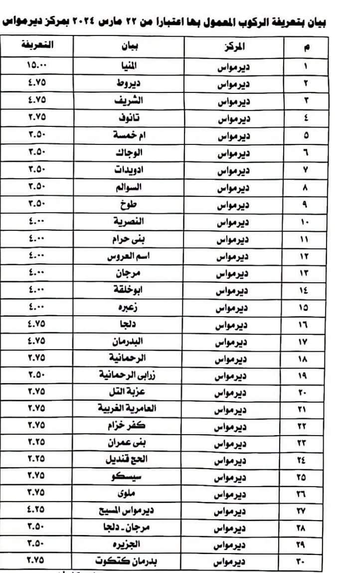 تعريفة الركوب الجديدة للقرى ومراكز المنيا