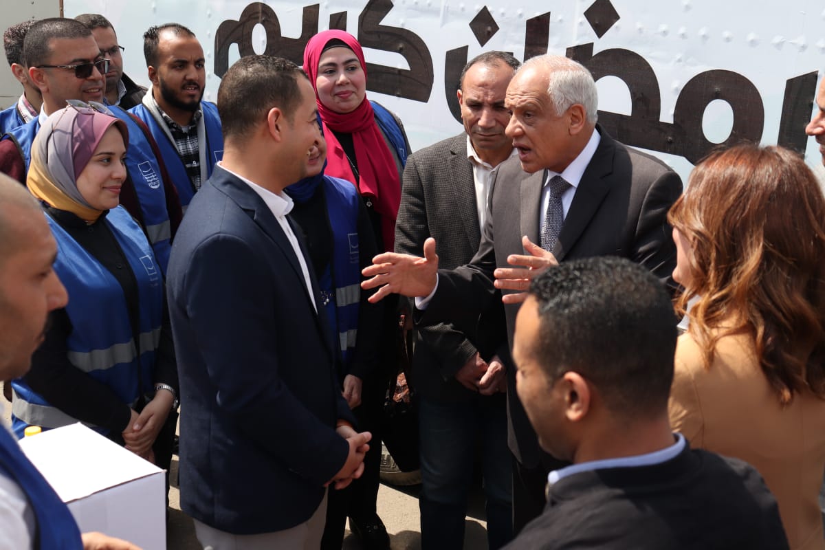 رافق المحافظ خلال إطلاقه القافلة هند عبد الحليم نائب المحافظ واللواء شاكر يونس السكرتير العام وأحمد شعيب منسق عام مبادرة حياة كريمة بالجيزة ومتطوعي المبادرة.