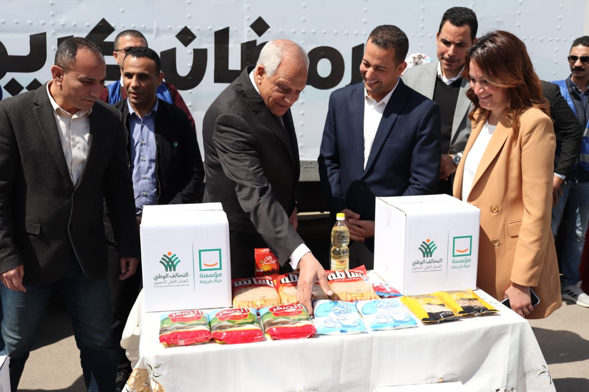 قافله مواد غذائية بإجمالي ١٠٠٠ كرتونة مقدمة من حياه كريمة لتوزيعها على الأسر الأولى بالرعاية بالمحافظة