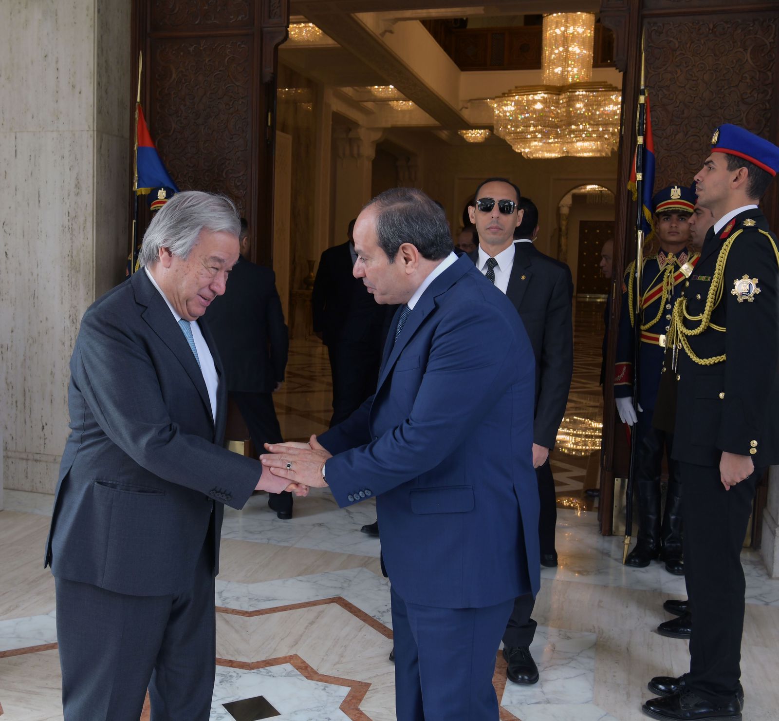 استقبل الرئيس عبد الفتاح السيسي، بقصر الاتحادية، "أنطونيو جوتيريش" سكرتير عام الأمم المتحدة، بحضور سامح شكري وزير الخارجية، واللواء عباس كامل رئيس المخابرات العامة، و"فيليب لازاريني" مفوض عام وكالة الأمم المتحدة لغوث وتشغيل اللاجئين الفلسطينيين "الأونروا"، والسيدة "إلينا بانوفا" المنسقة المقيمة للأمم المتحدة في مصر.