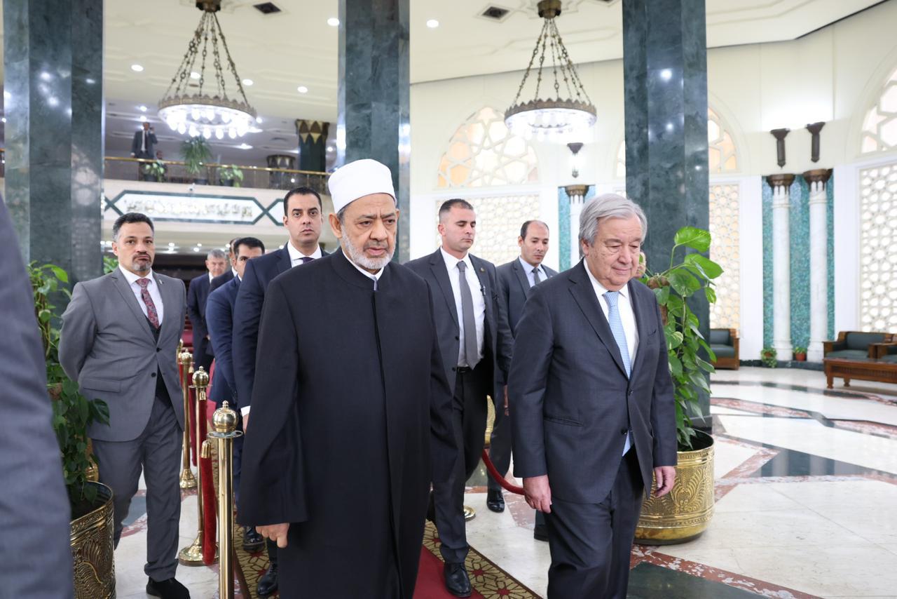 استقبل فضيلة الإمام الأكبر أ. د. أحمد الطيب، شيخ الأزهر الشريف، اليوم الأحد بمشيخة الأزهر، أنطونيو جوتيريش، الأمين العام للأمم المتحدة، يرافقه "فيليب لازاريني" مفوض عام وكالة الأمم المتحدة لغوث وتشغيل اللاجئين الفلسطينيين "الأونروا"، والسيدة "إلينا بانوفا" المنسقة المقيمة للأمم المتحدة في مصر؛ حيث ناقش الطرفان مستجدات الأوضاع في غزة.