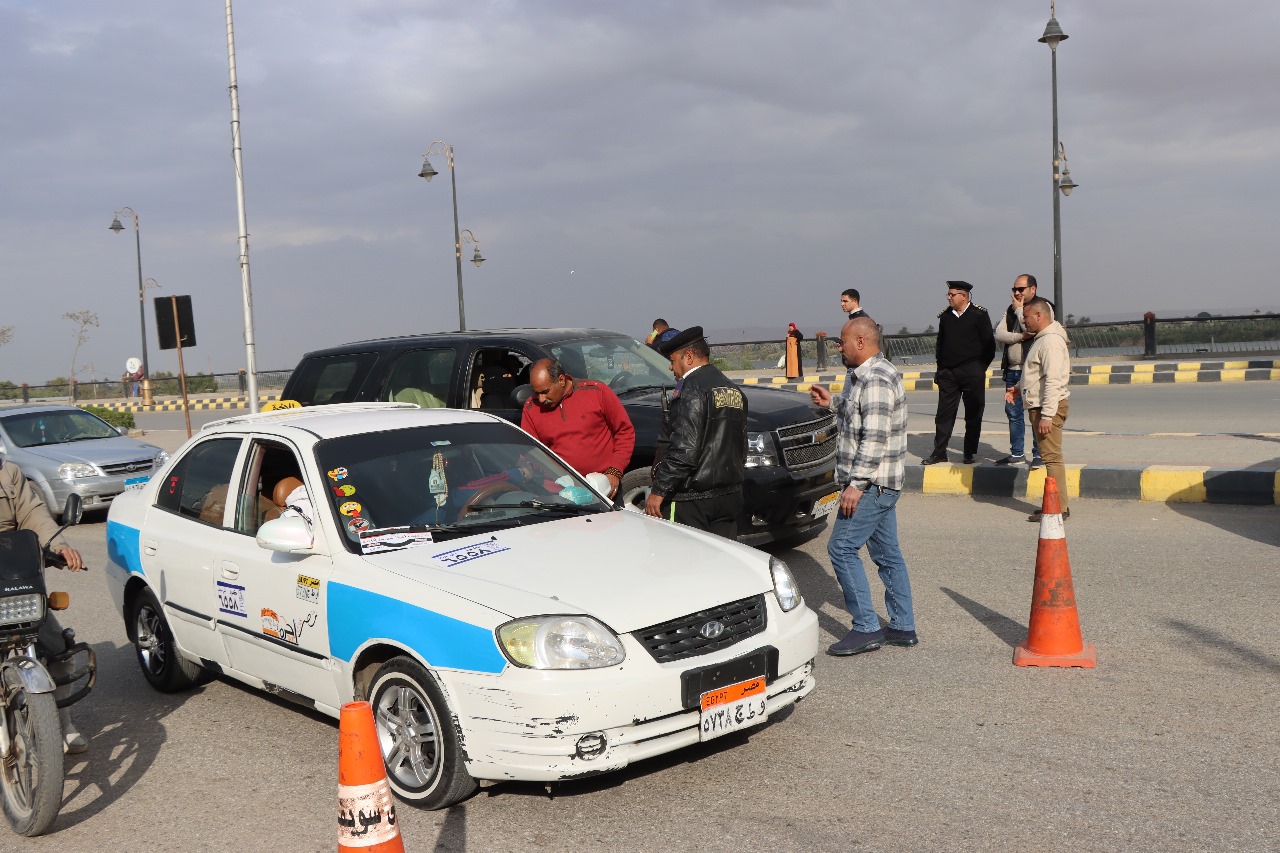 وفي هذا السياق، تم تنفيذ حملة مكبرة بالتعاون بين إدارة المرور ومباحث المرور، من خلال لجان تفتيش وأكمنة مرورية على الطرق والشوارع والميادين ومواقف السيارات، وتم التشديد على سائقي الأجرة بعدم التلاعب في أسعار التعريفة الجديدة أو استغلال المواطنين بأي شكل، بالإضافة إلى متابعة إستمرار تركيب البنرات والملصقات بالمواقف على مستوى المحافظة، مدونا عليها بيان كامل بالتعريفة الجديدة، بجانب وضع الستيكرات والملصقات المتضمن خط السير وقيمة التعريفة الجديدة على الزجاج الأمامي والخلفي للسيارات.