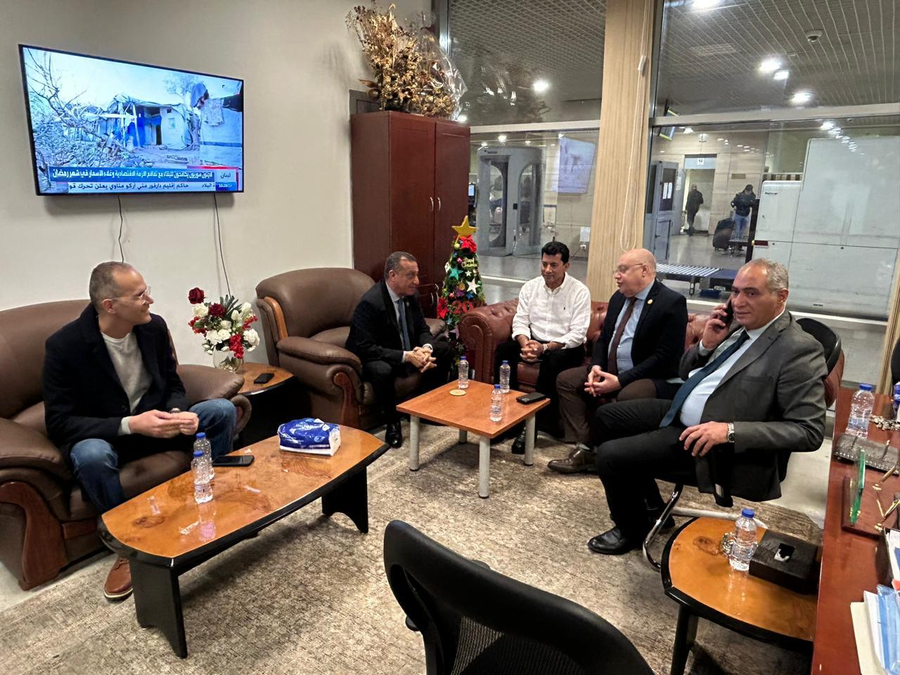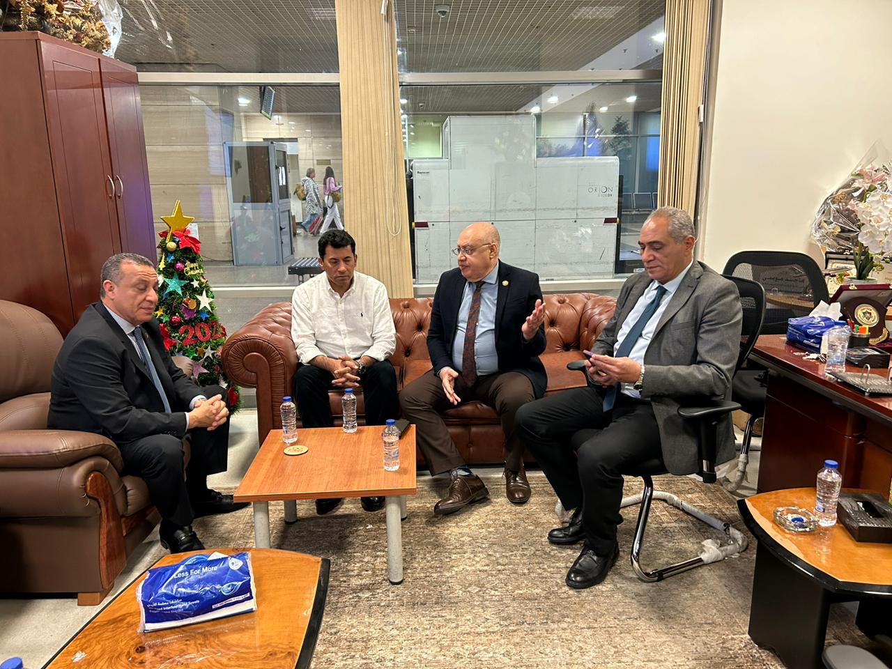 وتوجه "غتوري" و"موسي" والدكتور محمد السيد رئيس الإدارة المركزية لجمارك الخدمات المالية وهاني وزيري نقيب جمارك القاهرة ومصطفي عصمت من مكتب رئيس المصلحة الي مبني الركاب رقم ٢ وبصحبتهم مديري العموم كل من الدكتور شعبان عبد العزيز وأحمد سعد وأحمد علي وأسامة دياب وإيمن شملول وعدد من مديري الادارات وابرزهم أحمد عبد الهادي ومصطفي الجندي ورأفت وهيب وصبحي ربيع وريهام يونس وعمرو الفولي ومحمد الهادي وهاني ابو طالب ومن مكتب رئيس الإدارة المركزية لجمارك مطار كل من محمود القرش وسارة سمير لمتابعة وتشجيع العاملين في مبني الركاب رقم ٢ والاحتفال بتكليف ثلاثة مديرين عموم جدد بالإدارة المركزية ودعمهم.