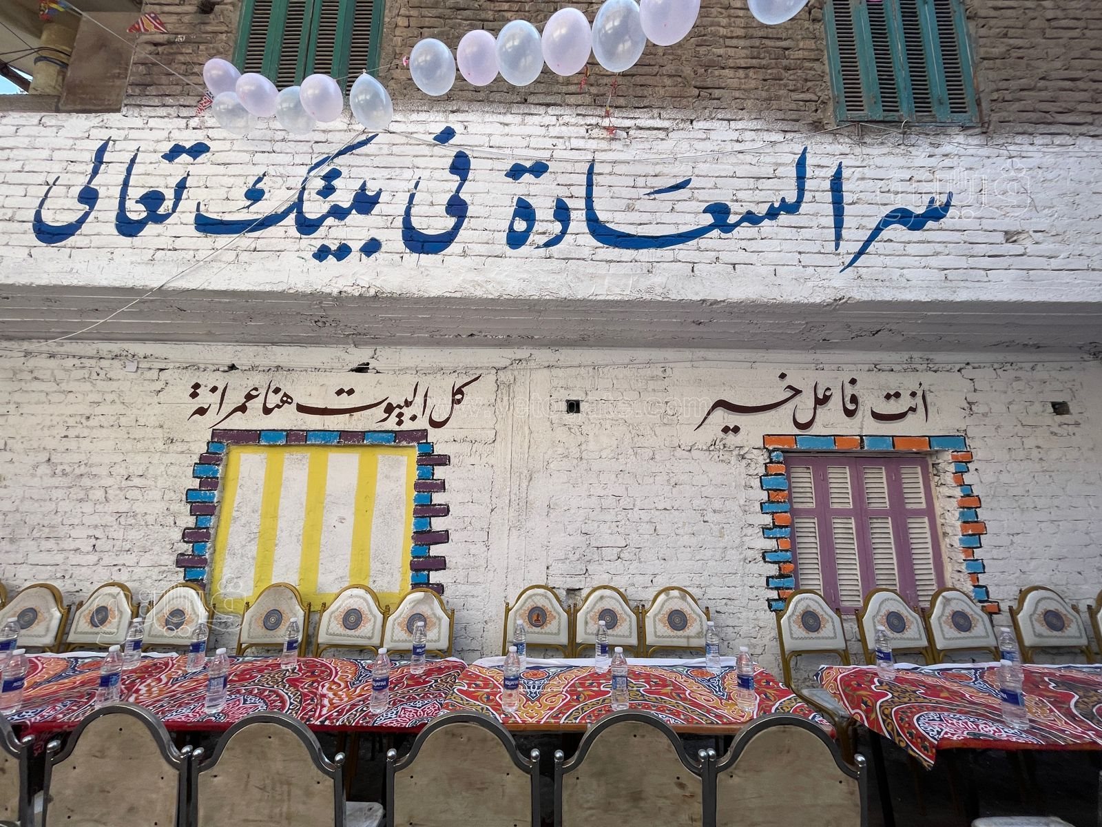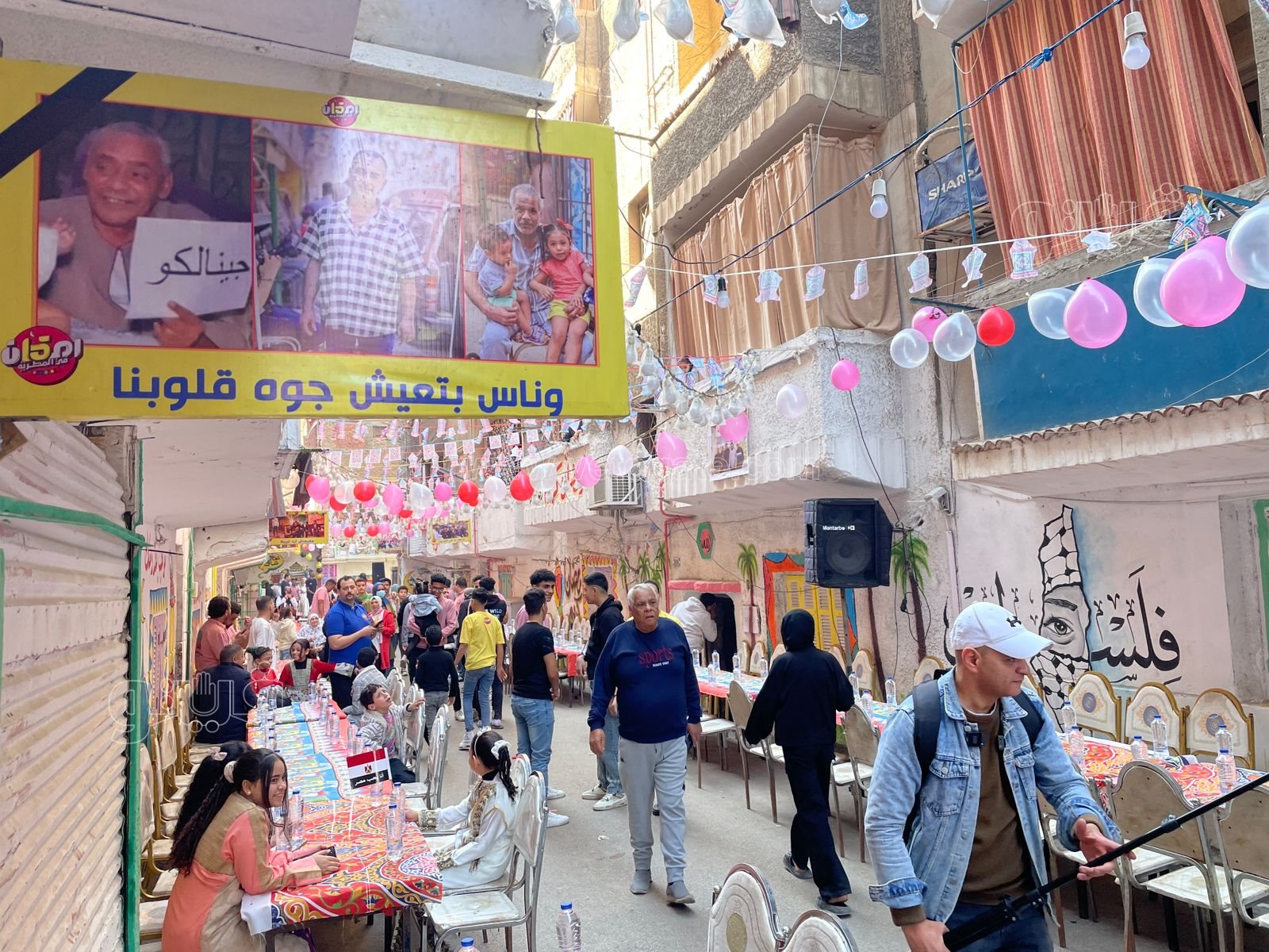 وافترش أهالي المطرية على طول الشارع المائدة مع تجهيزها بالأساسيات، مع انشغال الشباب والسيدات في وضع اللمسات الأخيرة على الطعام والعصائر.