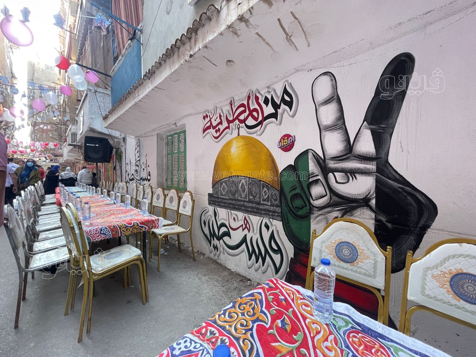 وحرص أهالي المطرية أن يكون إفطار السنة العاشرة مختلفا، حيث قاموا بتبييض جميع واجهات المنازل، مع رسم الجرافيتي لاشهر شخصيات وعبارات شهر رمضان المبارك، بالإضافة إلى رسم أكثر من جرافيتي لدولة فلسطين، للتعبير عن تضامنهم مع أهالي غزة خلال مقاومتهم للاحتلال.