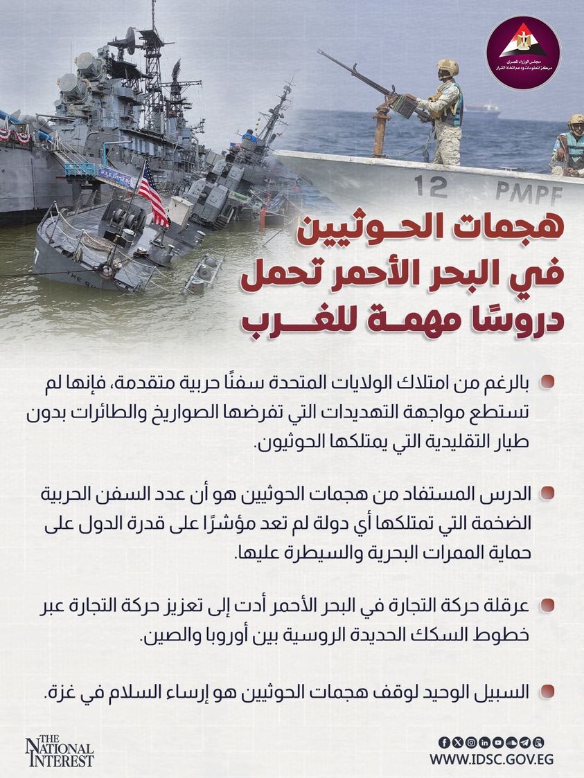كشفت الصفحة الرسمية لمركز المعلومات ودعم اتخاذ القرار بمجلس الوزراء على موقع التواصل الاجتماعي "فيسبوك" عن هجمات الحوثيين في البحر الأحمر.