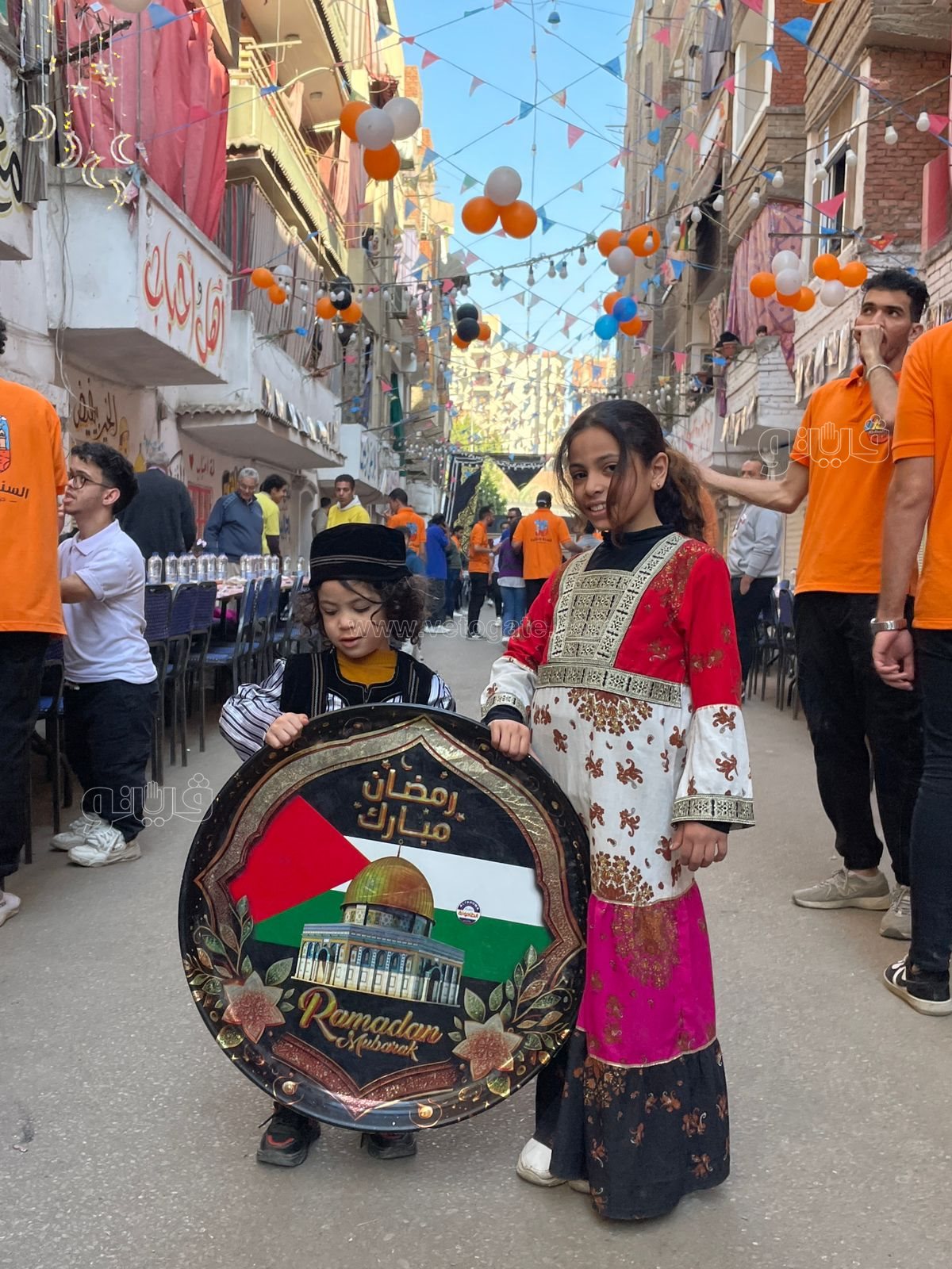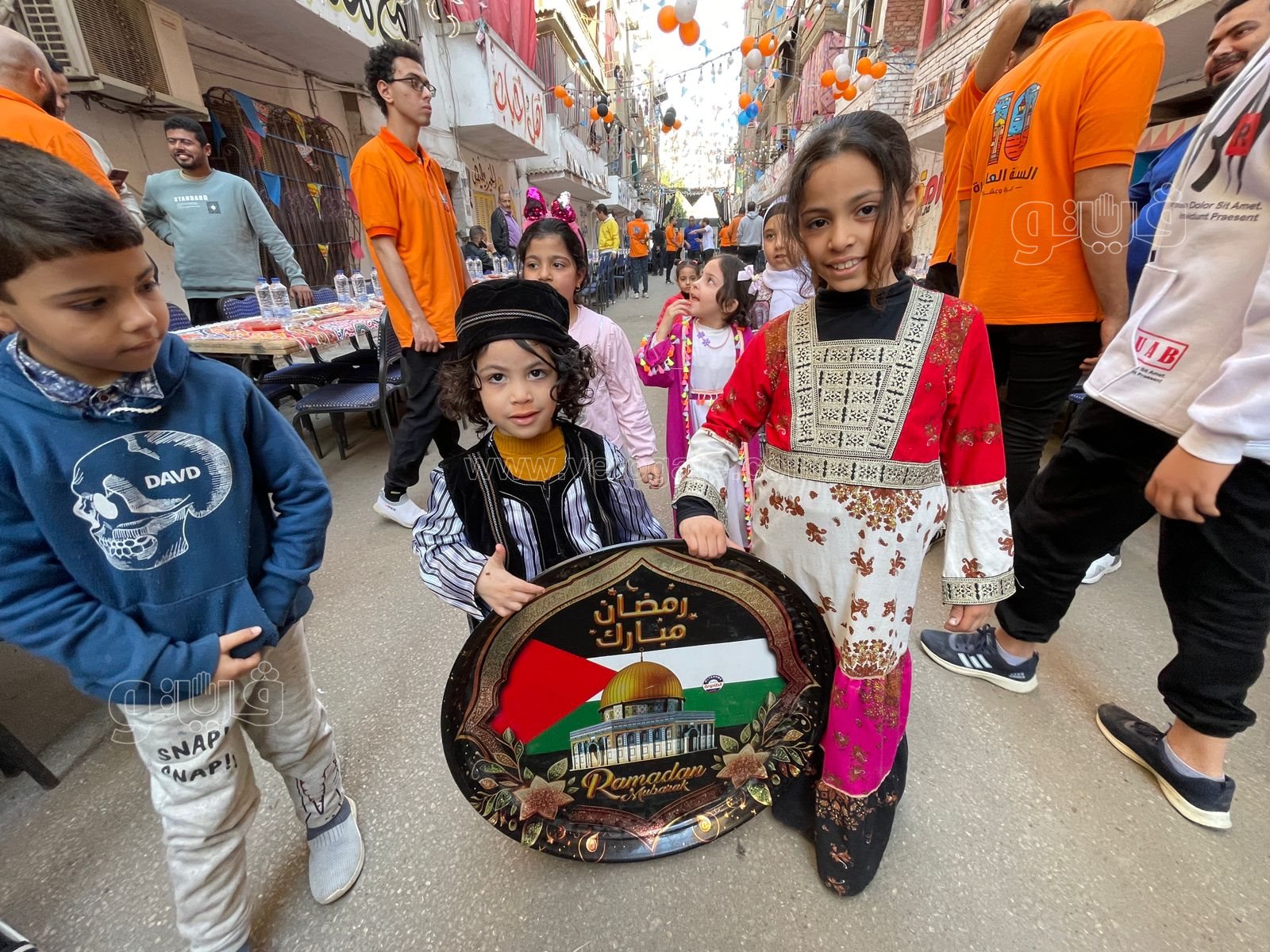 حرص أطفال منطقة عزبة حمادة بالمطرية على دعم أهالي وأطفال غزة، خلال الحفل السنوي العاشر للإفطار الجماعي للسنة العاشرة على التوالي.