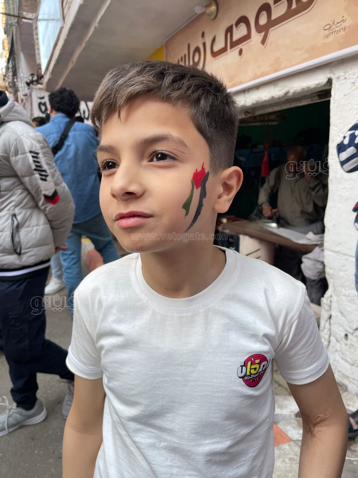 فحرص عدد من الأطفال على رسم علم فلسطين على وجوههم، فيما حرصت أحد الفتيات على ارتداء عباءة بعلم فلسطين، في مشهد لفت الأنظار إليهم.