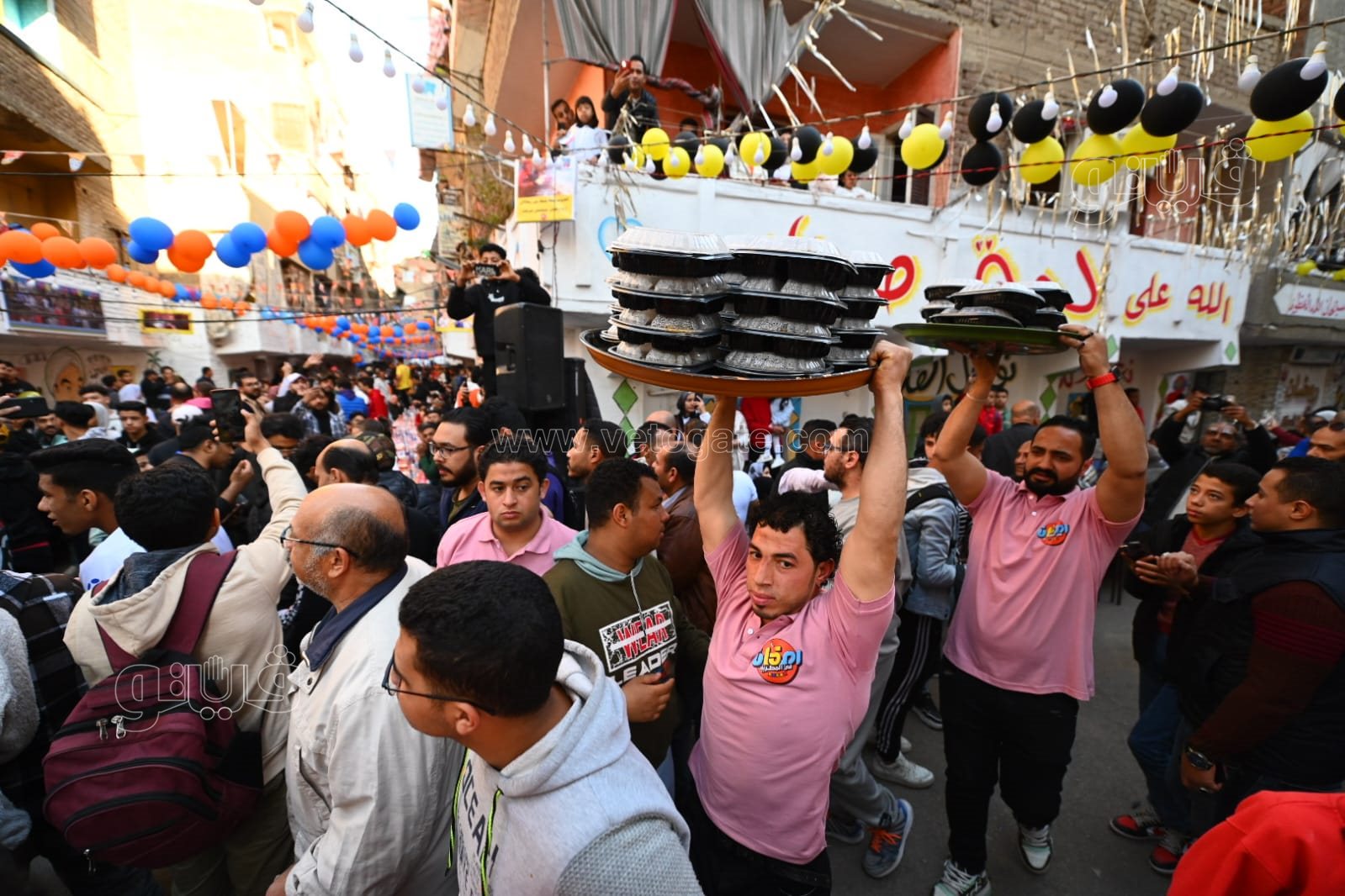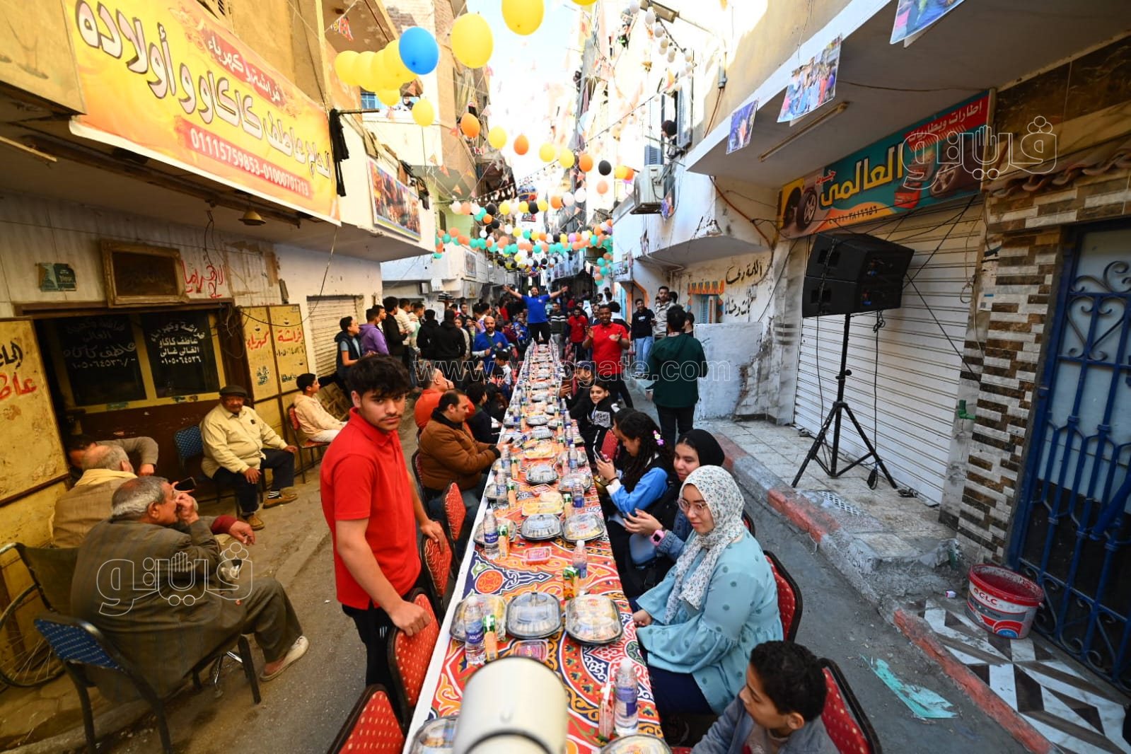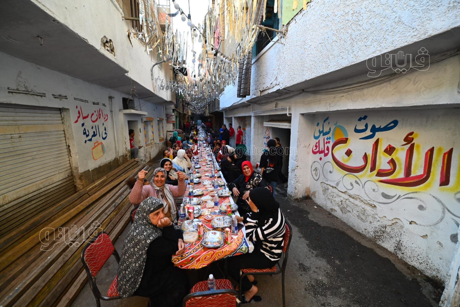 وافترش أهالي المطرية على طول الشارع المائدة مع تجهيزها بالأساسيات، مع انشغال الشباب والسيدات في وضع اللمسات الأخيرة على الطعام والعصائر.