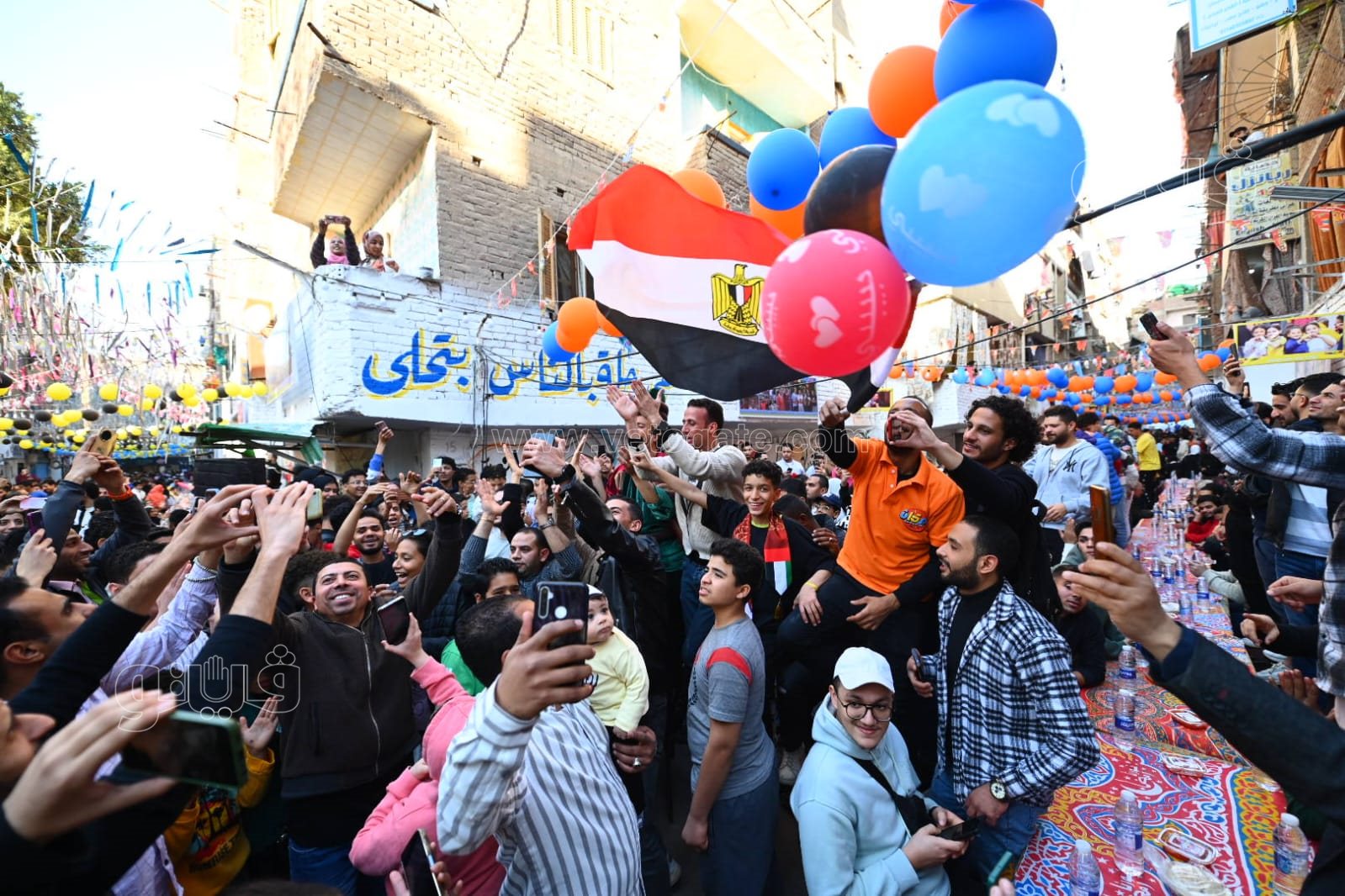 فيما دخل شباب آخرون في وصلة هتاف ورقص بشارع المطرية، احتفالا باستمرار إقامة الحفل الإفطار السنوي للسنة العاشرة في يوم 15 رمضان.