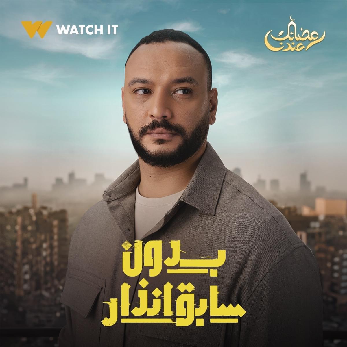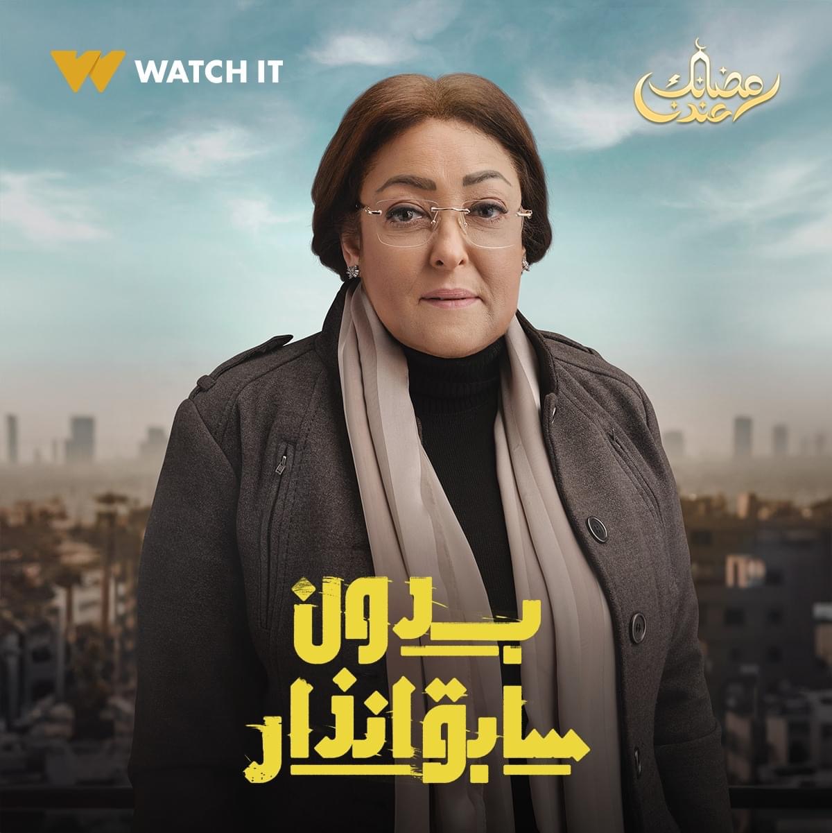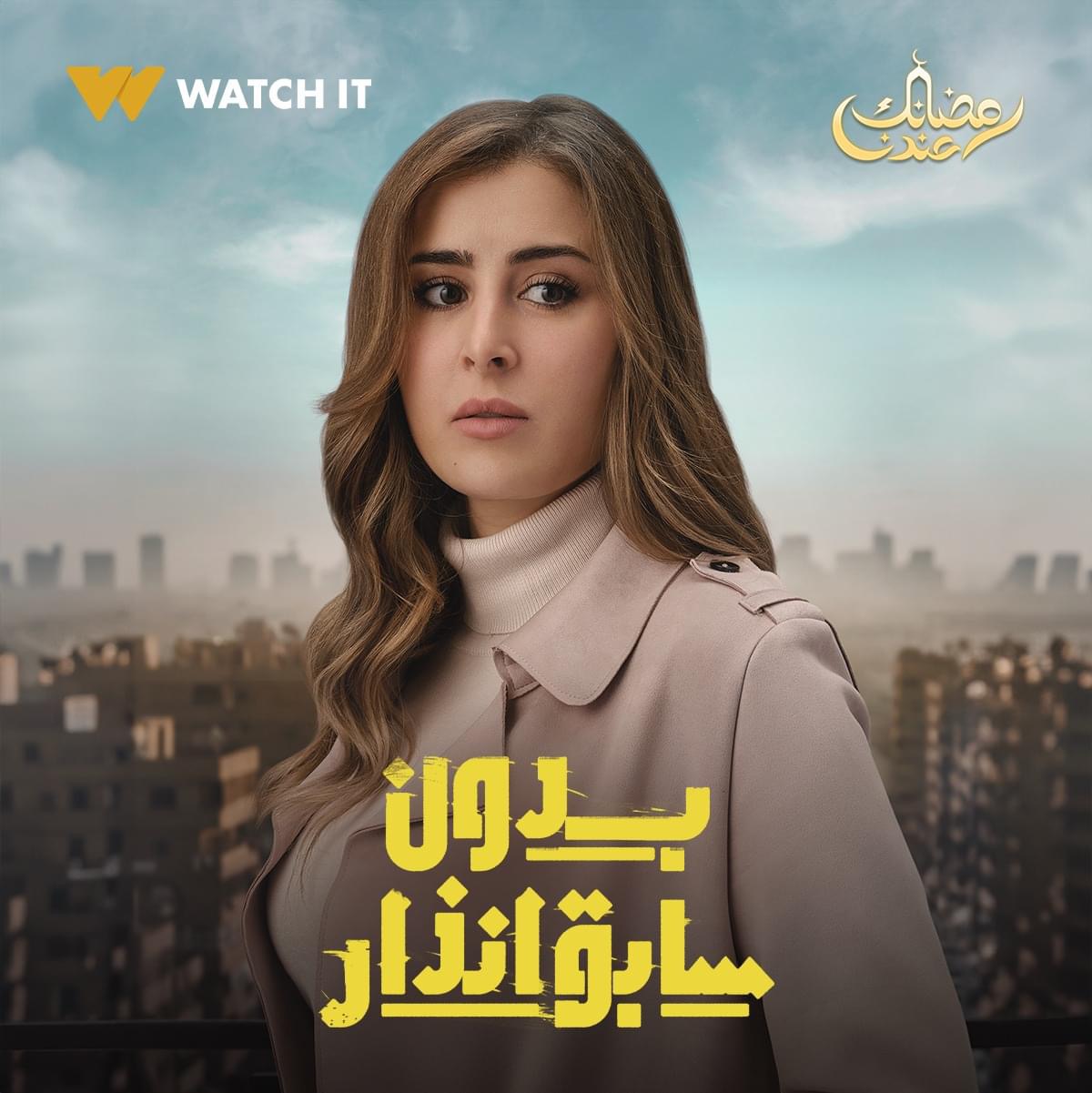 مسلسل بدون سابق إنذار، طرحت منصة watch it عبر صفحتها الرسمية على موقع التواصل الاجتماعي "فيس بوك" بوسترات أبطال مسلسل بدون سابق إنذار، والمقرر عرضه ابتداء من غد الثلاثاء الموافق 16 رمضان الجاري عبر قناة DMC وWatch it.