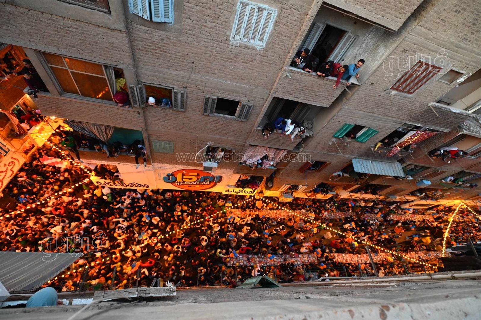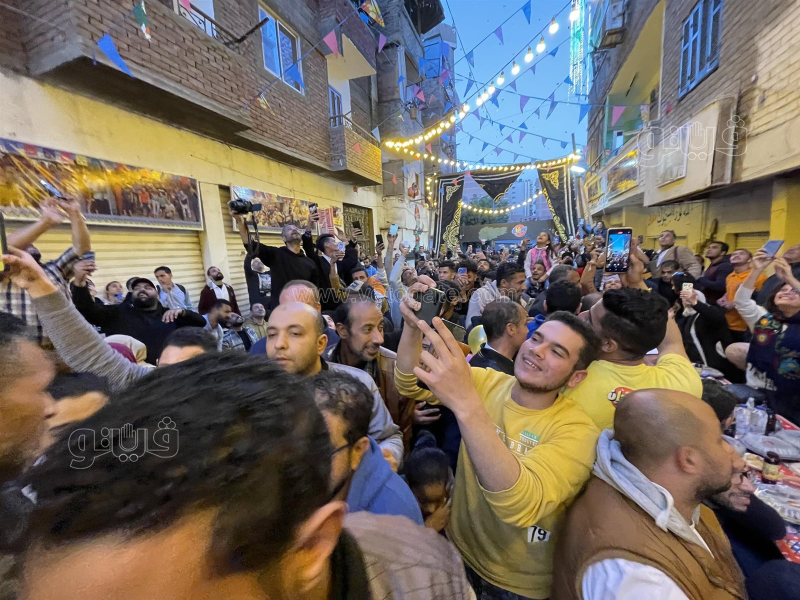 فيما دخل شباب آخرون في وصلة هتاف ورقص بشارع المطرية، احتفالا باستمرار إقامة حفل الإفطار السنوي للسنة العاشرة في يوم 15 رمضان.