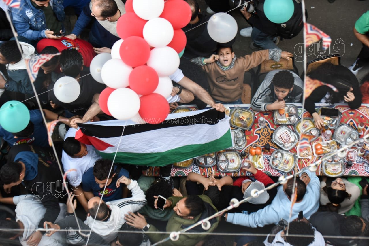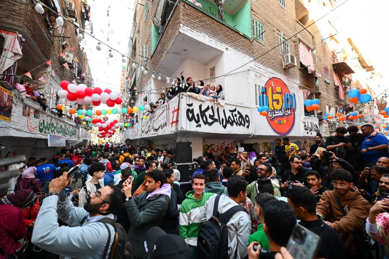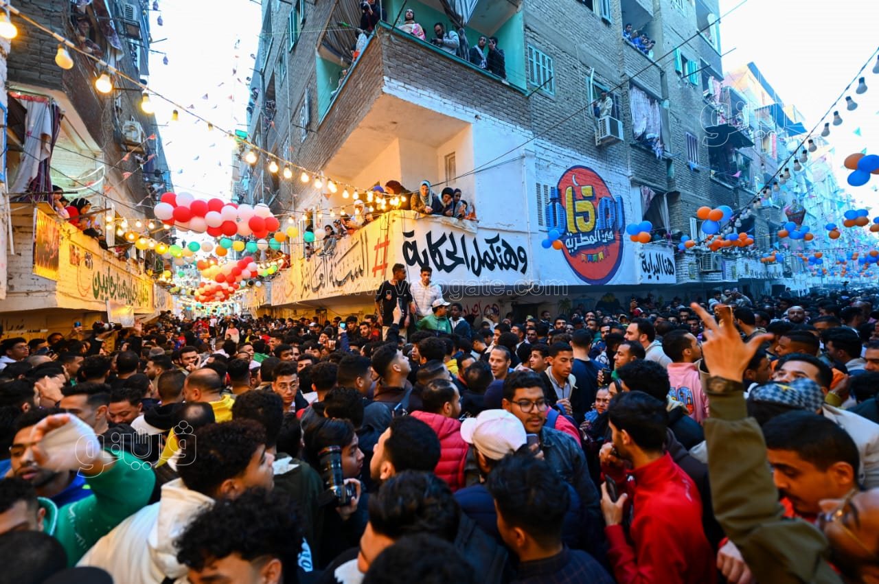 فيما دخل شباب آخرون في وصلة هتاف ورقص بشارع المطرية، احتفالا باستمرار إقامة حفل الإفطار السنوي للسنة العاشرة في يوم 15 رمضان.