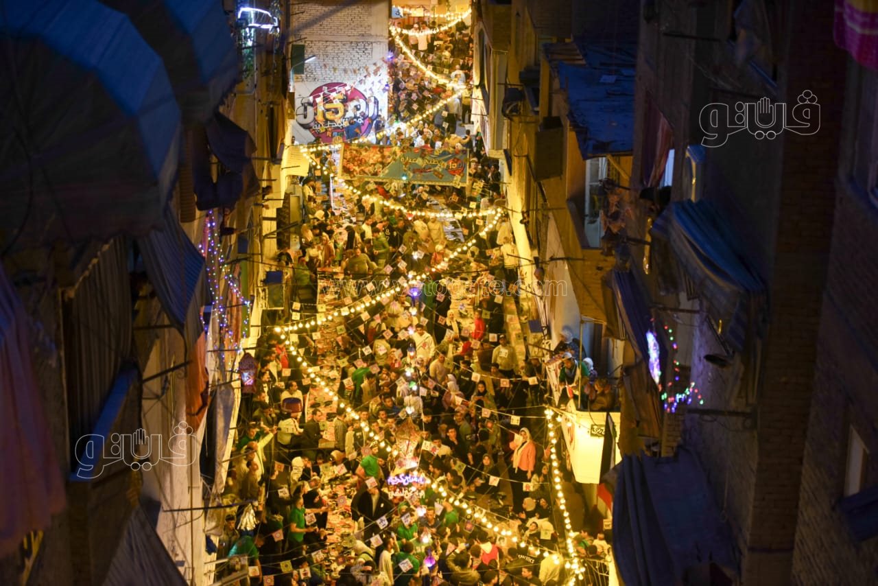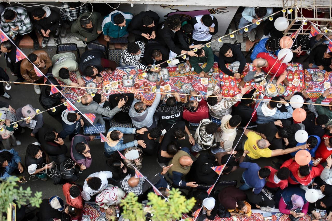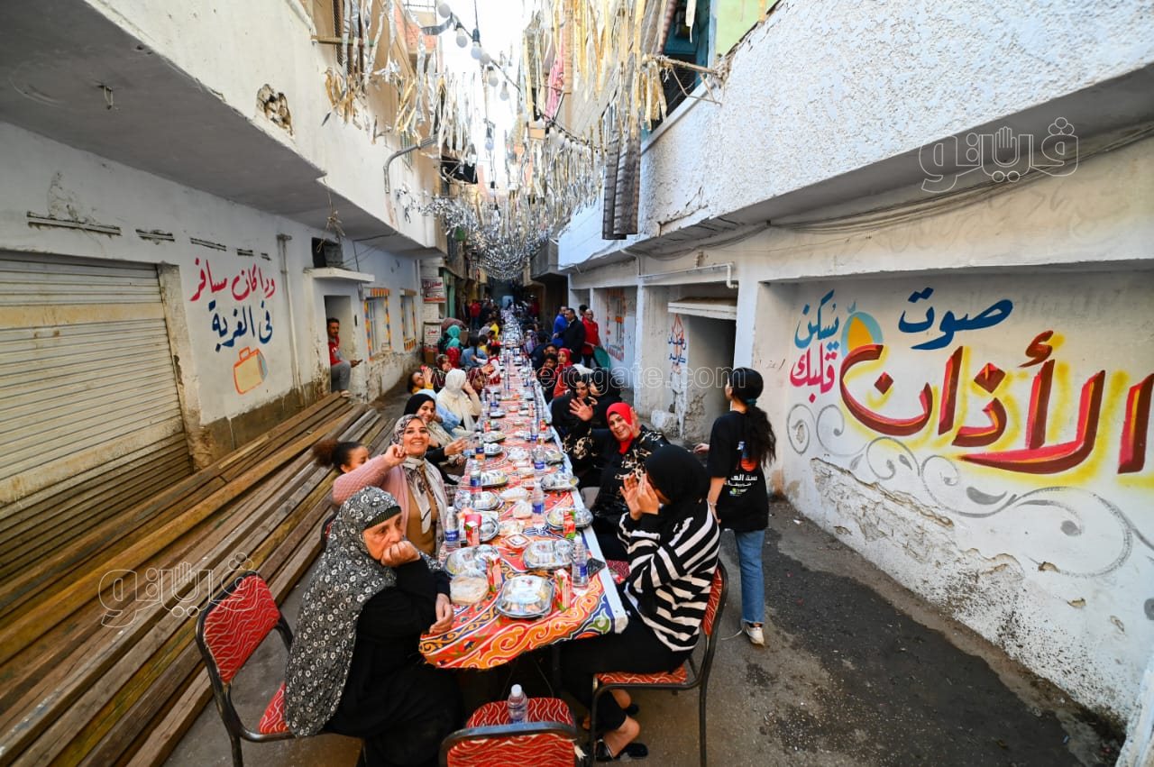 وافترش أهالي المطرية على طول الشارع المائدة مع تجهيزها بالأساسيات، مع انشغال الشباب والسيدات في وضع اللمسات الأخيرة على الطعام والعصائر.