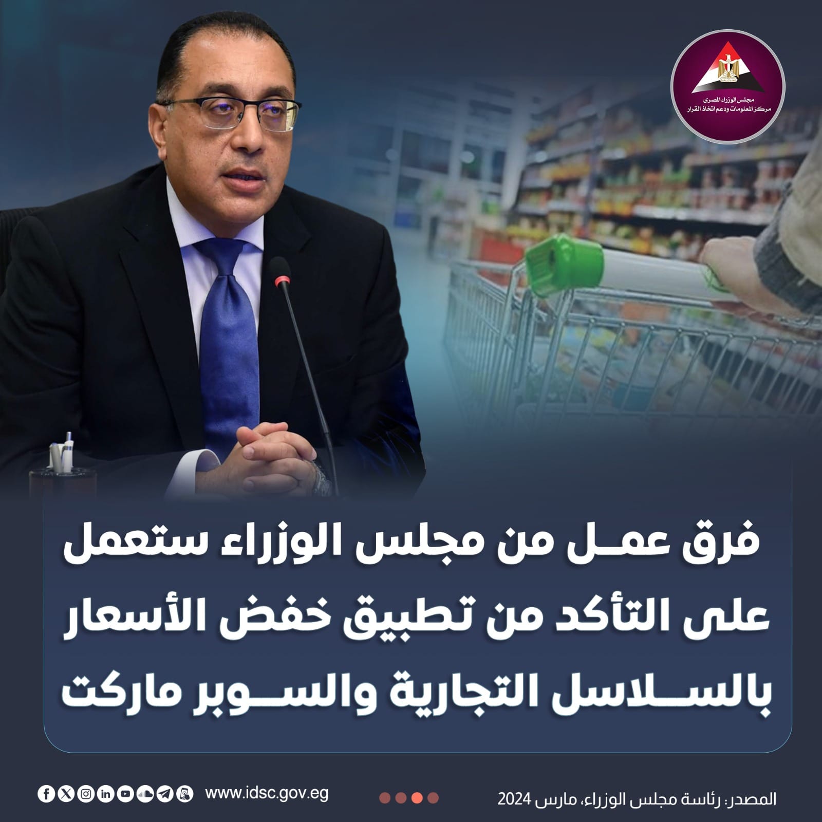 كشفت الصفحة الرسمية لمركز المعلومات ودعم اتخاذ القرار بمجلس الوزراء على موقع التواصل الاجتماعي "فيسبوك" عن قرارات مجلس الوزراء بشأن خفض أسعار السلع والمنتجات.
