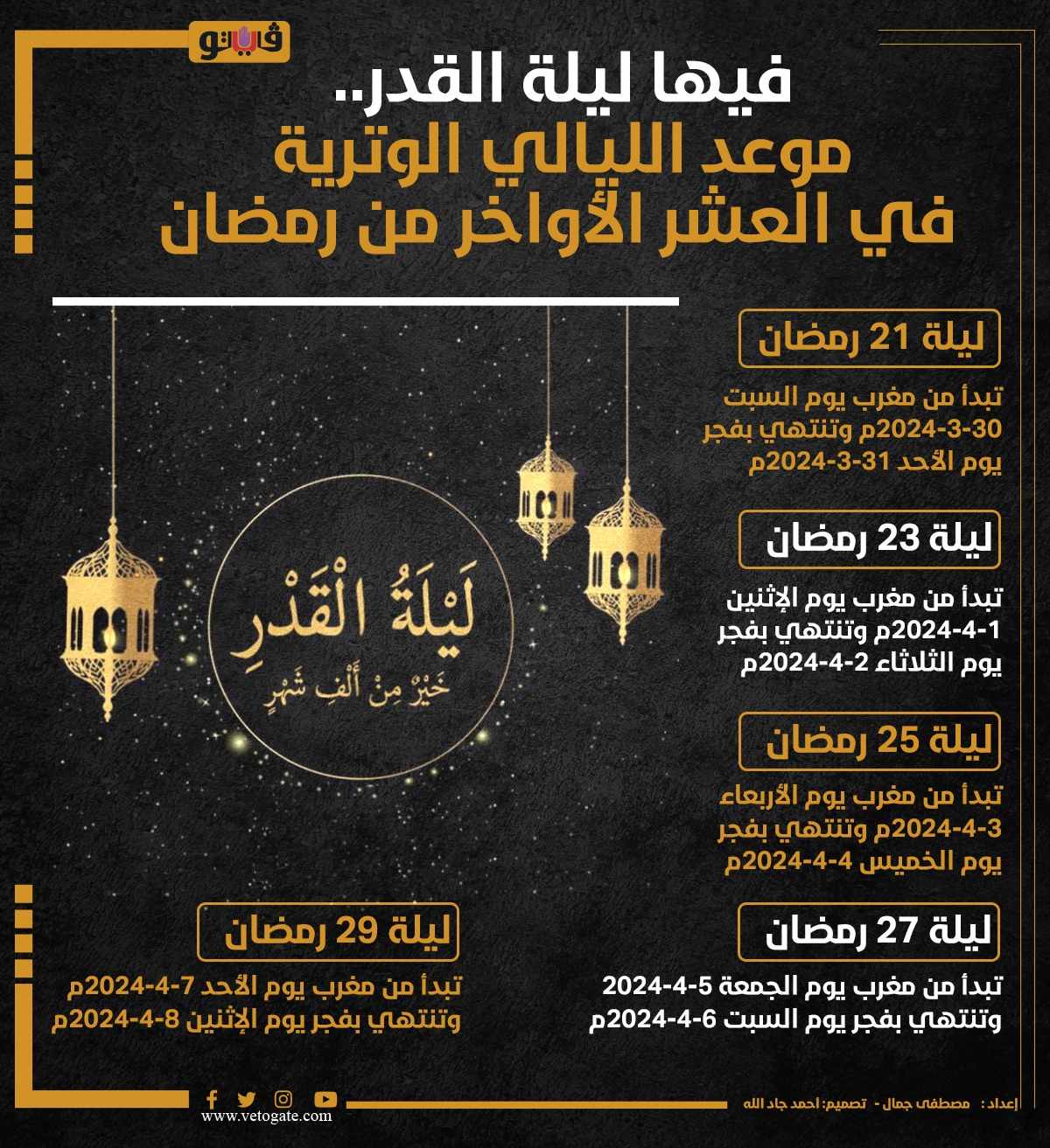 فيها ليلة القدر، موعد الليالي الوترية في العشر الأواخر من رمضان