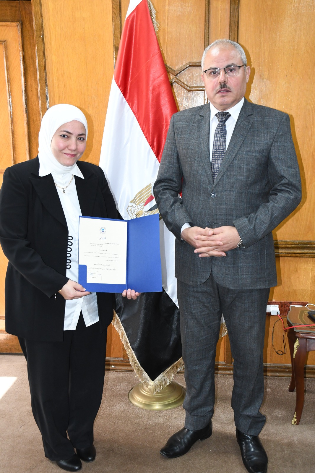 حضر مراسم تسليم القرار الدكتور محمد سعد زغلول نائب رئيس الجامعة لشئون الدراسات العليا والبحوث، والدكتورة سهير أبو عيشه أمين عام الجامعة.