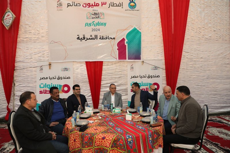جاء ذلك خلال مشاركته حفل الإفطار الجماعي الذي أقامه صندوق تحيا مصر بالتعاون مع المؤسسة الدولية لريادة الأعمال لعدد 1000 صائم من المواطنين وعمال النظافة والتجميل بالمحافظة وذلك بساحة ناصر بمدينة الزقازيق في حضور الدكتور أحمد عبد المعطي نائب المحافظ والمهندس محمد الصافي سكرتير أم المحافظة والمهندس سامي معجل السكرتير العام المساعد للمحافظة وأحمد مرسي بصندوق تحيا مصر والدكتور محمود عبد العظيم وكيل وزارة الشباب والرياضة والمحاسب علي الصناديلي رئيس مركز ومدينة الزقازيق وشعبان أبو الفتوح رئيس حي ثان.